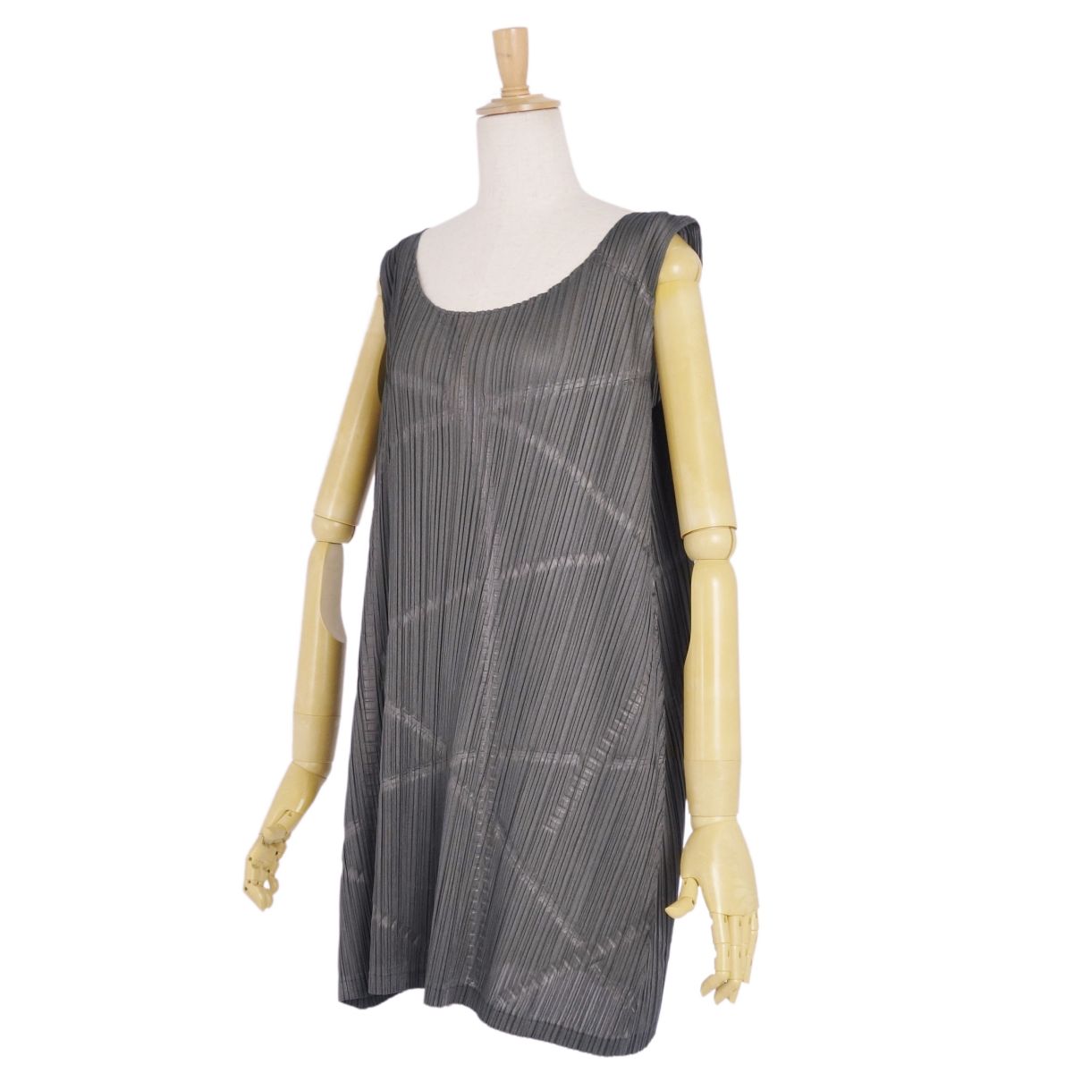 プリーツプリーズ イッセイミヤケ PLEATS PLEASE ワンピース ブラウス ノースリーブ プリーツ トップス レディース グレー サイズ3(L相当)