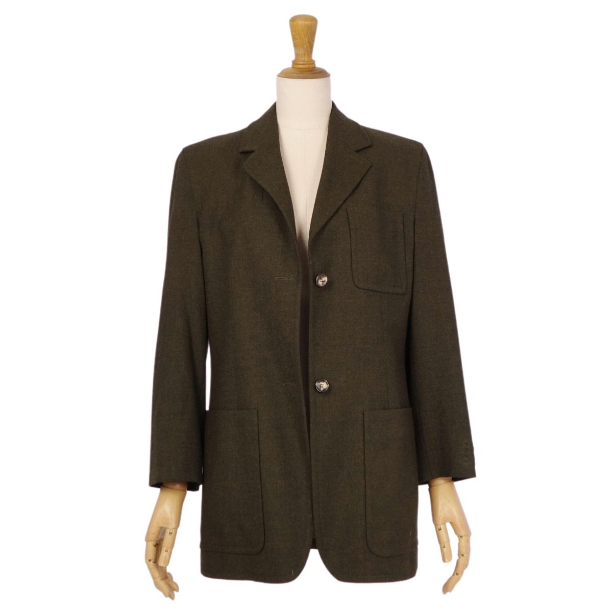 Vintage セリーヌ CELINE ジャケット テーラードジャケット シングル 無地 ウール アウター レディース カーキ サイズ36(S相当)