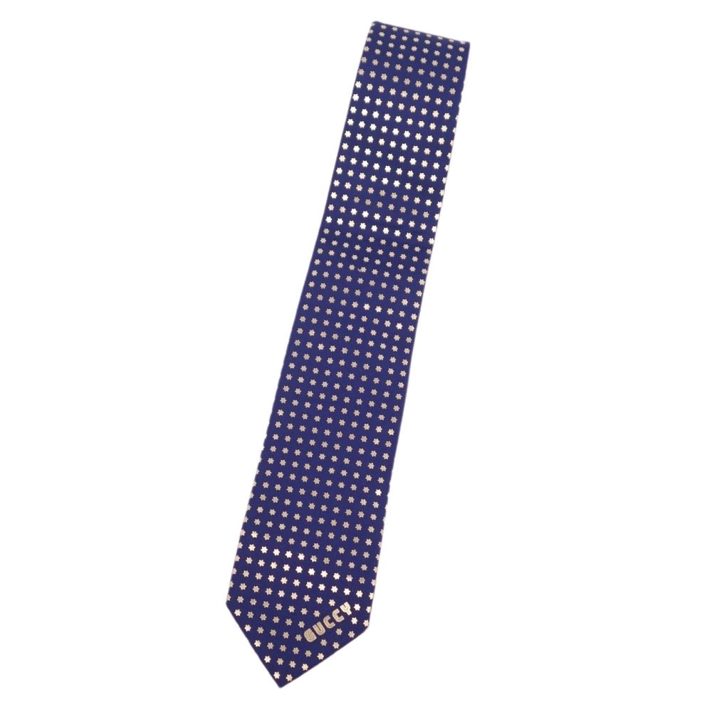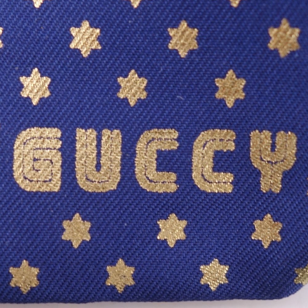グッチ GUCCI ネクタイ GUCCY 星柄 総柄 シルク メンズ イタリア製 ネイビー サイズ-