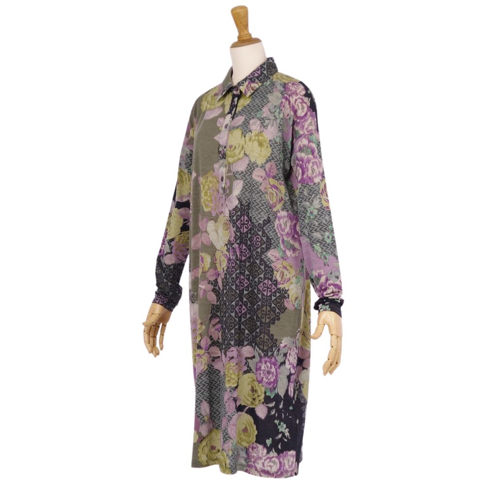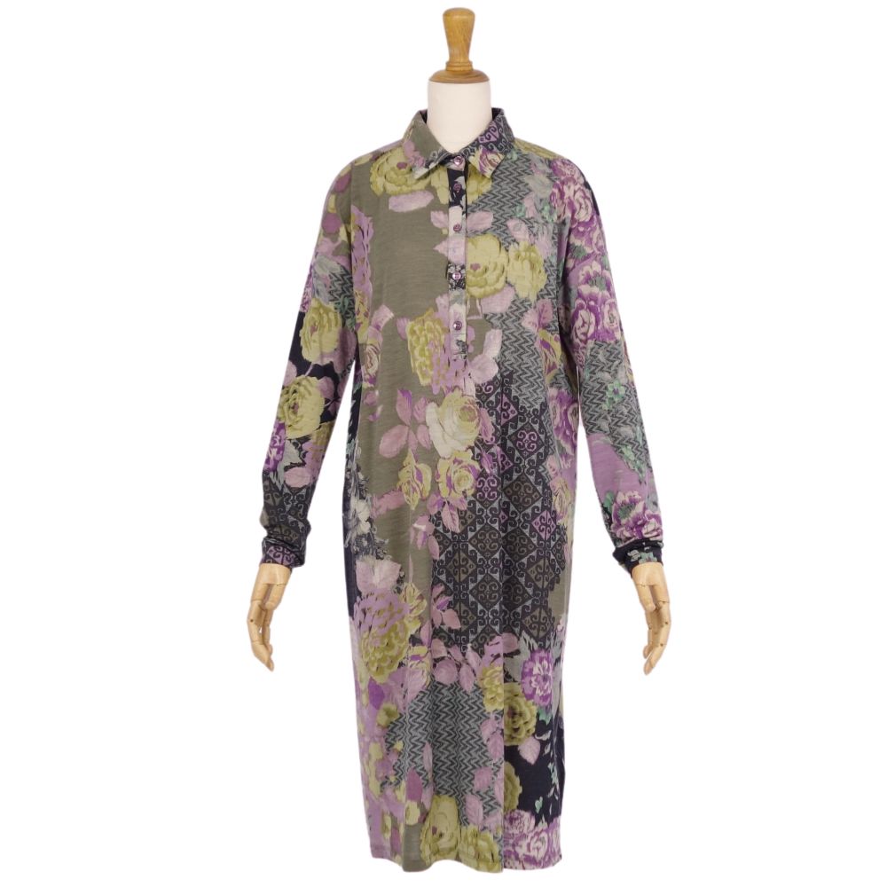 エトロ ETRO ワンピース ロングスリーブ ニット 総柄 トップス レディース イタリア製 マルチカラー サイズ44(XL相当)