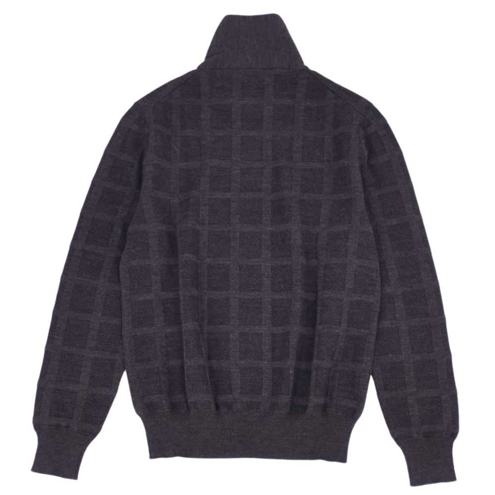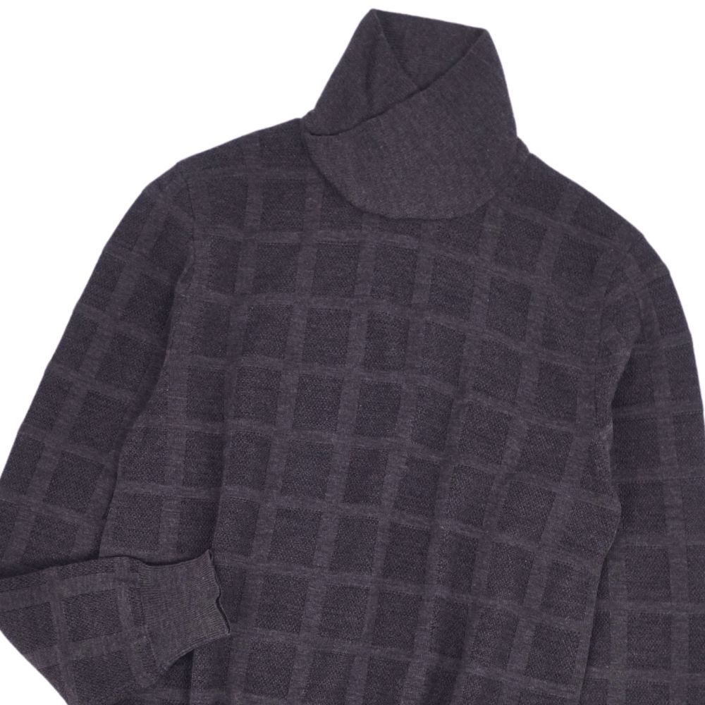 エルメス HERMES ニット ハイネック セーター チェック ウール トップス メンズ イタリア製 グレー サイズM