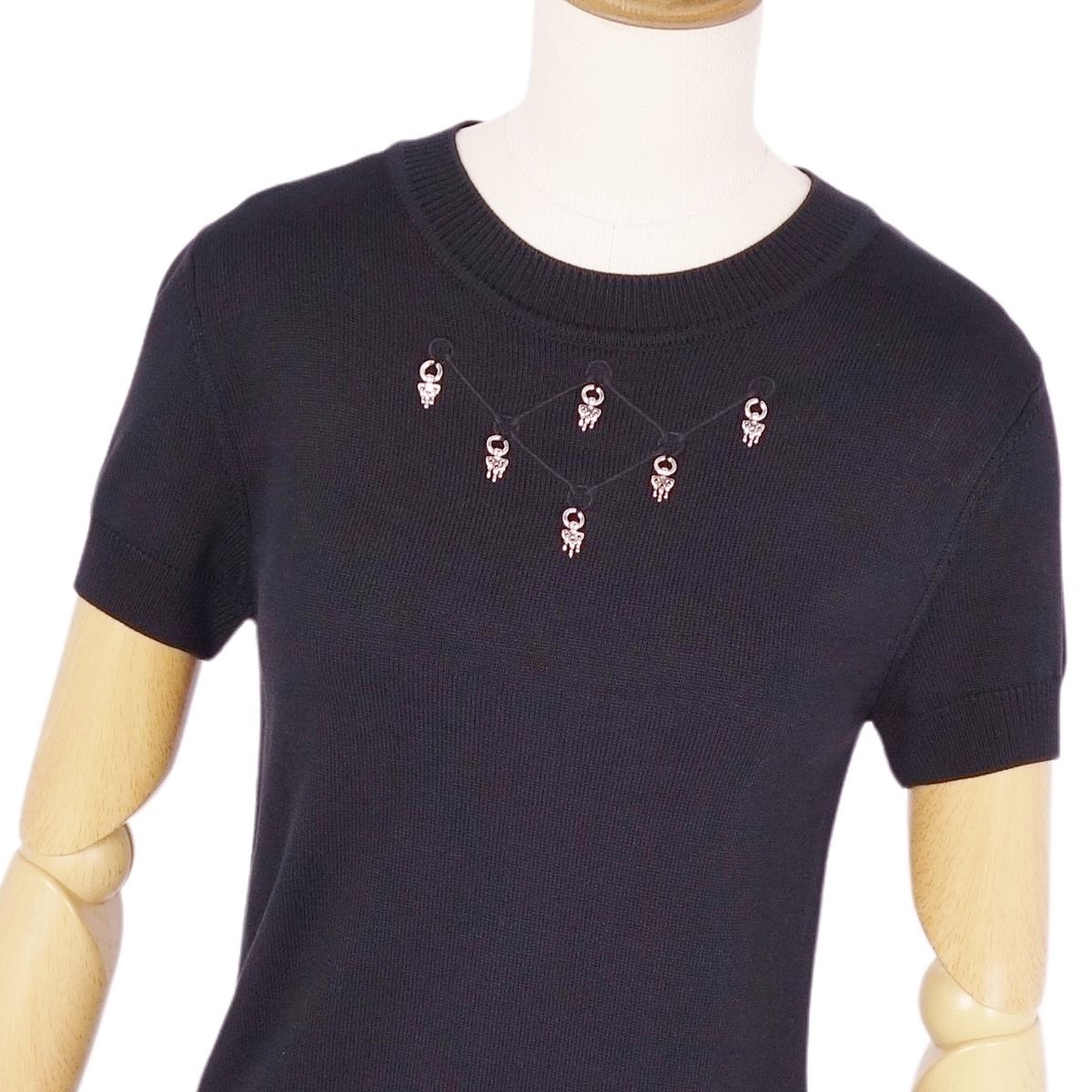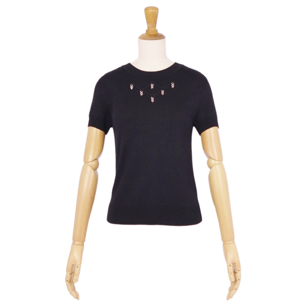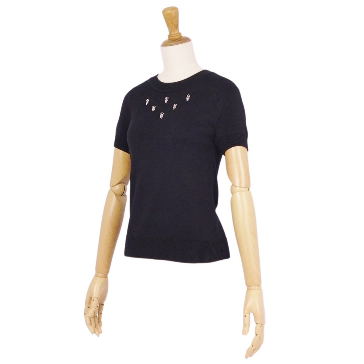 エルメス HERMES ニット セーター 22SS 半袖 ショートスリーブ チャーム シルク トップス レディース ブラック サイズ34(S相当)