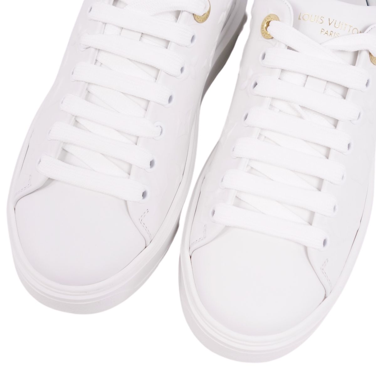 ルイヴィトン LOUIS VUITTON スニーカー タイムアウト ライン レースアップ モノグラム レザー シューズ レディース ホワイト サイズ36(23cm相当)
