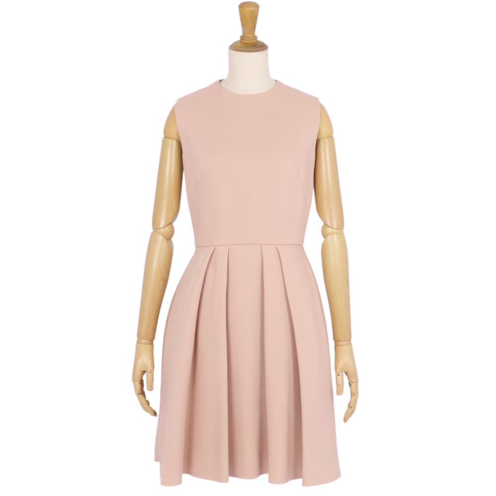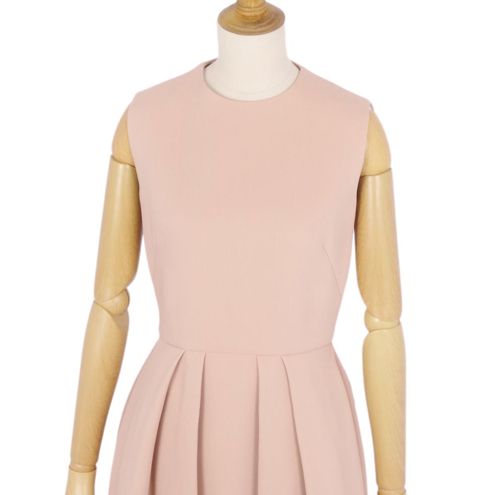 【美品】クリスチャンディオール Christian Dior 2020年 ワンピース ドレス ノースリーブ シルク レディース 34(XS相当) ピンクベージュ【中古】