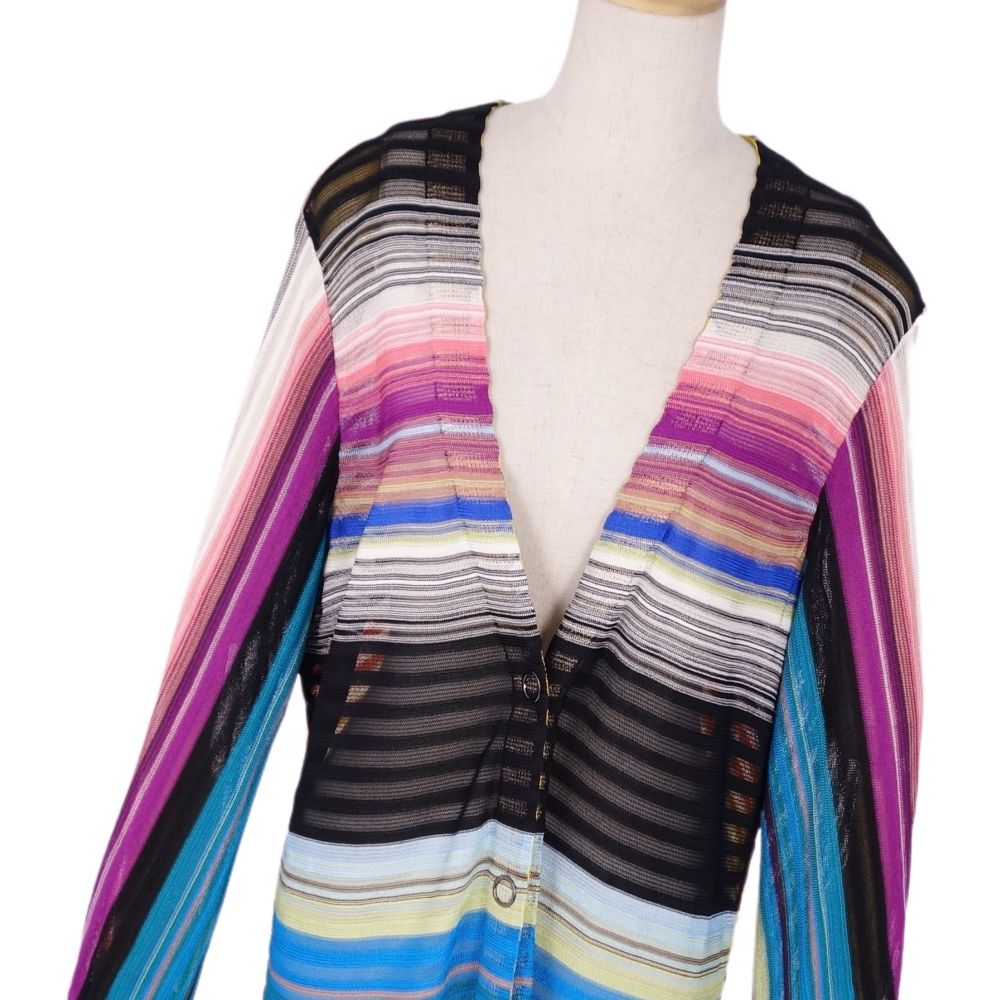 ミッソーニ MISSONI カーディガン コーディガン ニット ボーダー レーヨン トップス レディース イタリア製 マルチカラー サイズ48(XXL相当)