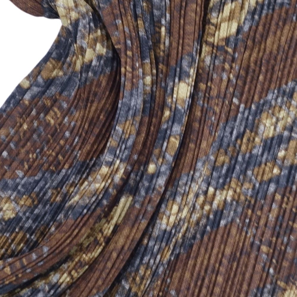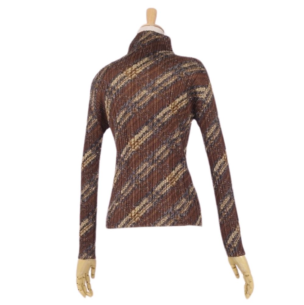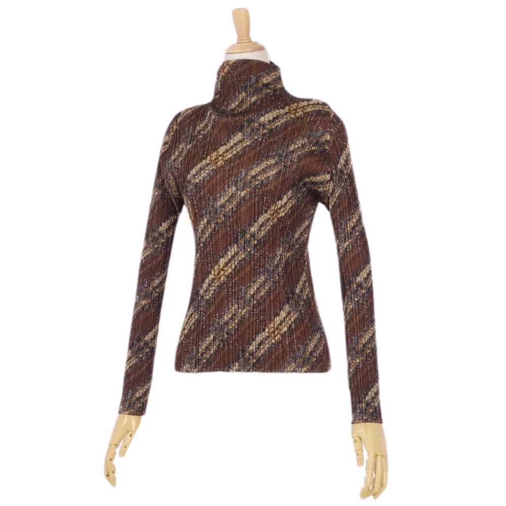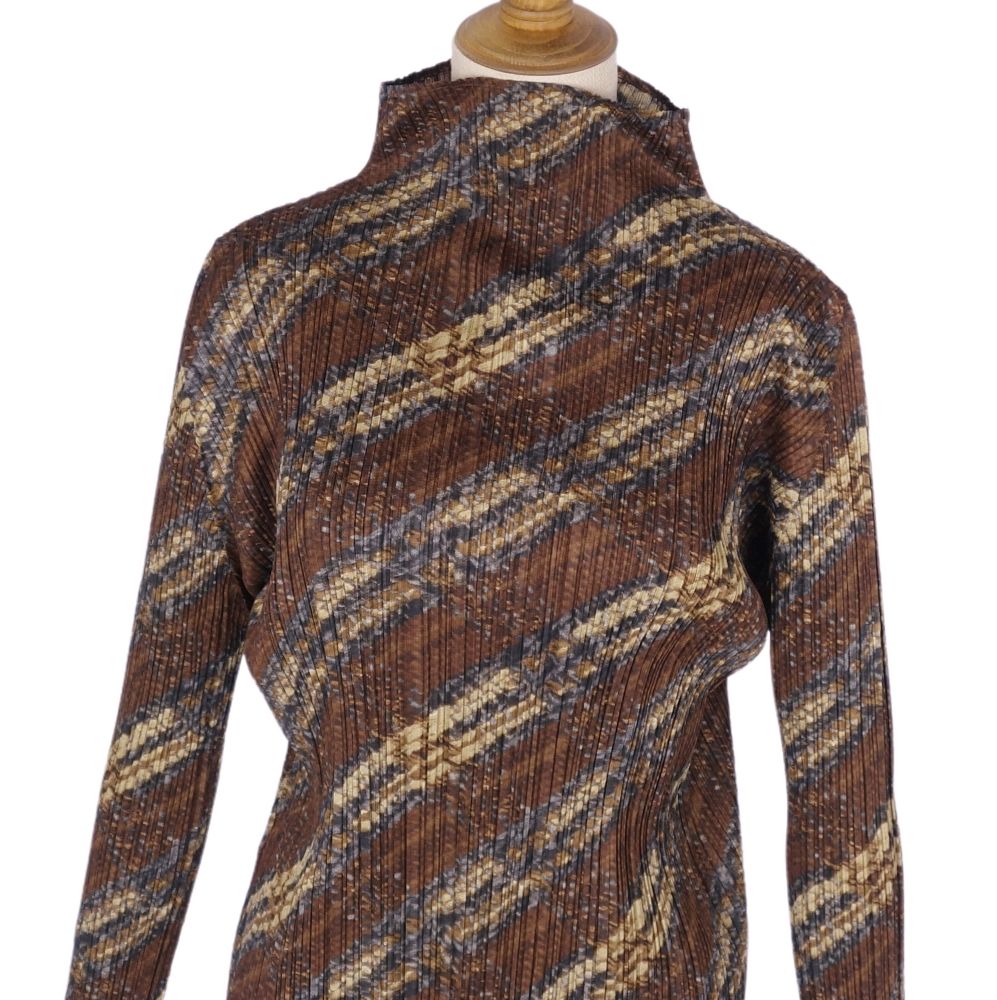 プリーツプリーズ イッセイミヤケ PLEATS PLEASE シャツ ブラウス ハイネック プリーツ 総柄 トップス レディース ブラウン サイズ3(L相当)