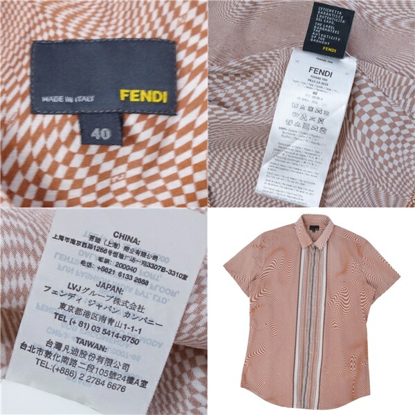 フェンディ FENDI シャツ 半袖 ショートスリーブ 総柄 コットン トップス メンズ マルチカラー サイズ40(M相当)
