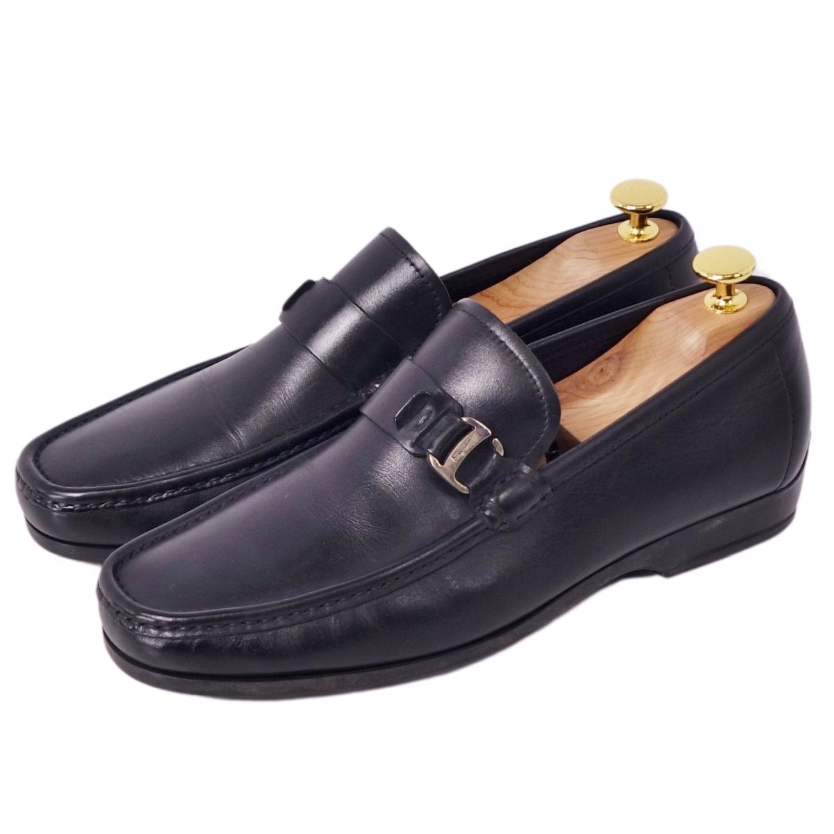 商品名 サルヴァトーレ フェラガモ Salvatore Ferragamo ローファー モカシン レザー シューズ メンズ ブラック 7(25cm相当) ブラック【中古】