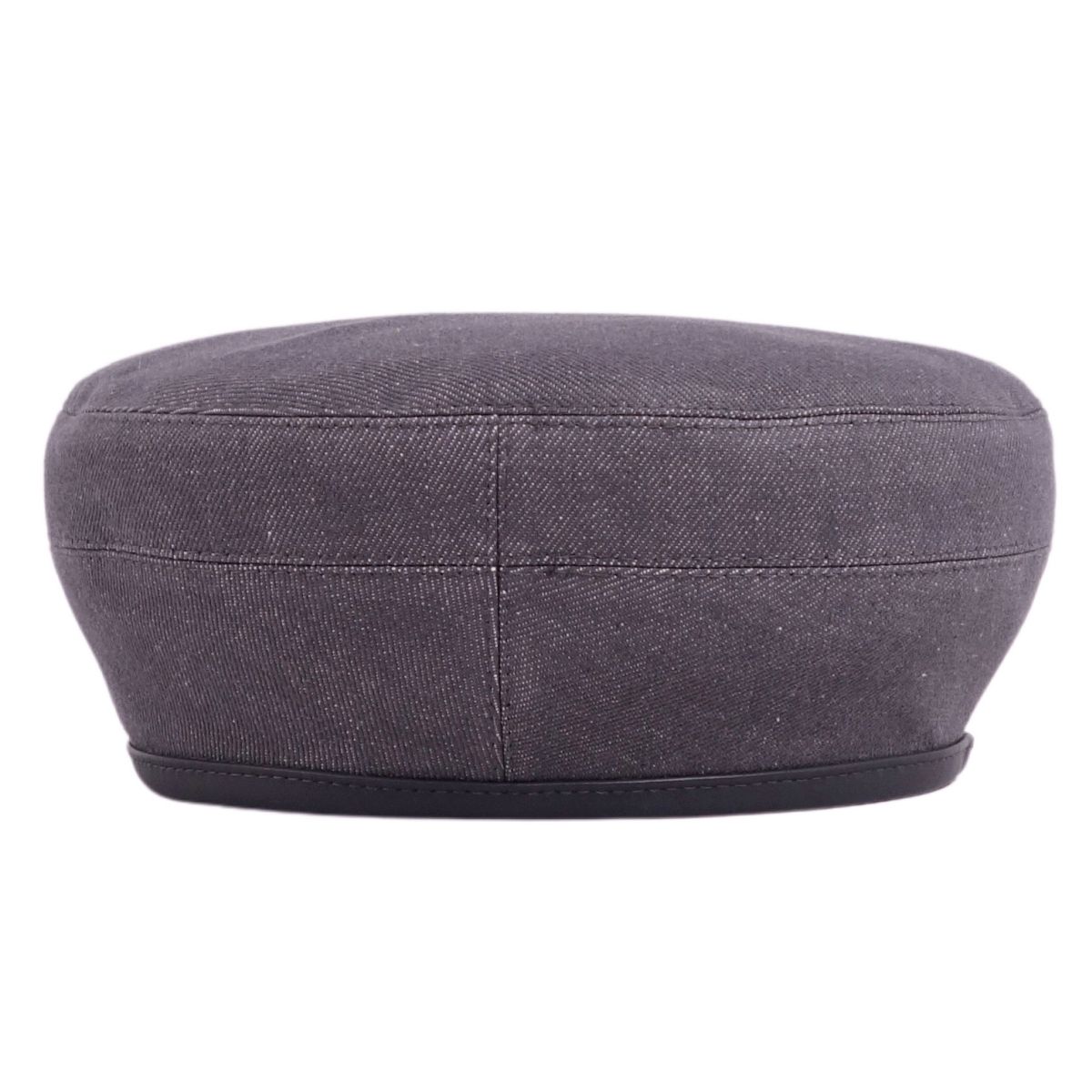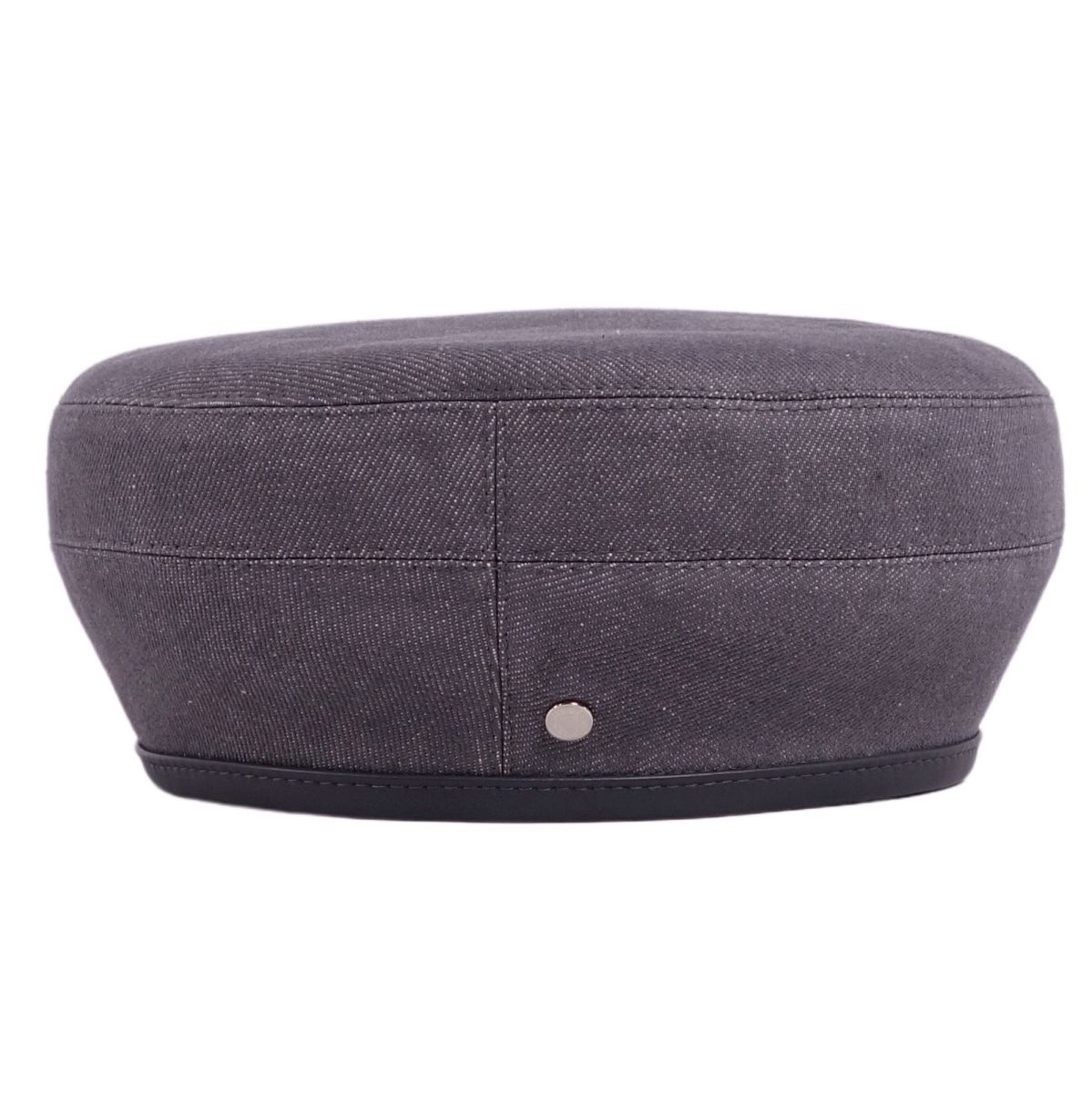 エルメス HERMES 帽子 ベレー帽 サントノーレ 2022年 セリエボタン デニム カーフレザー レディース イタリア製 グレー サイズ58
