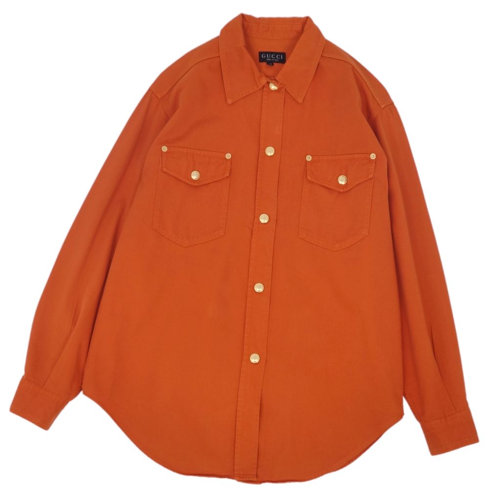 グッチ GUCCI トムフォード期 シャツ ロングスリーブ 長袖 コットン イタリア製 トップス レディース オレンジ サイズ42(M相当)