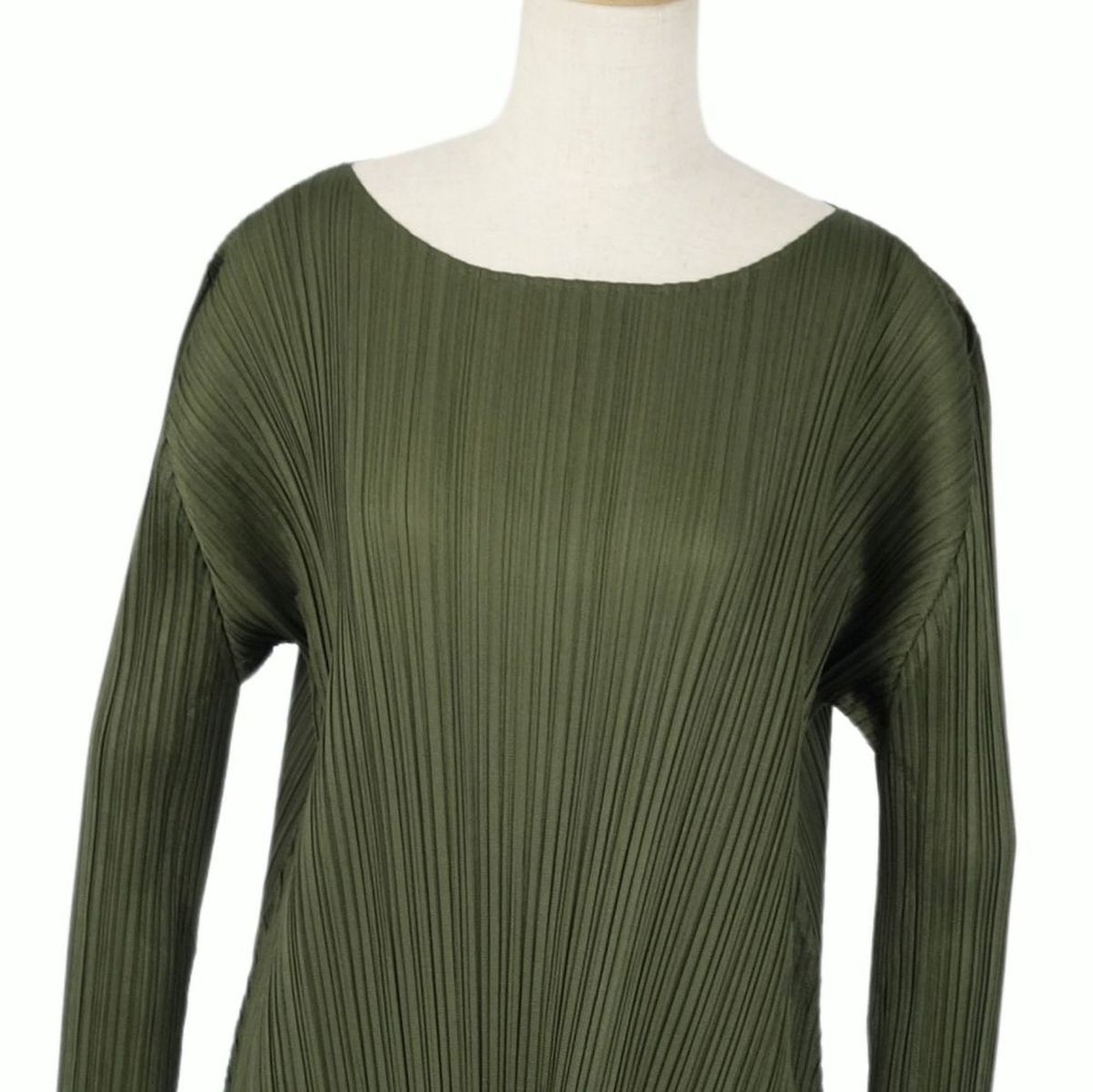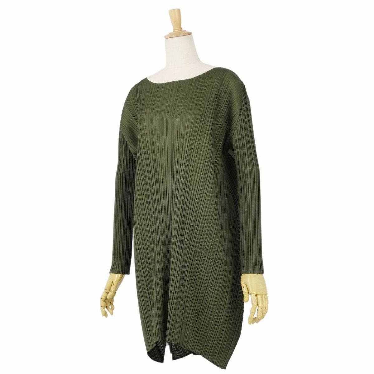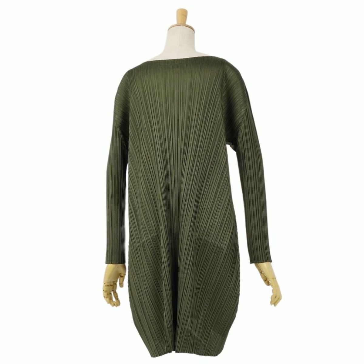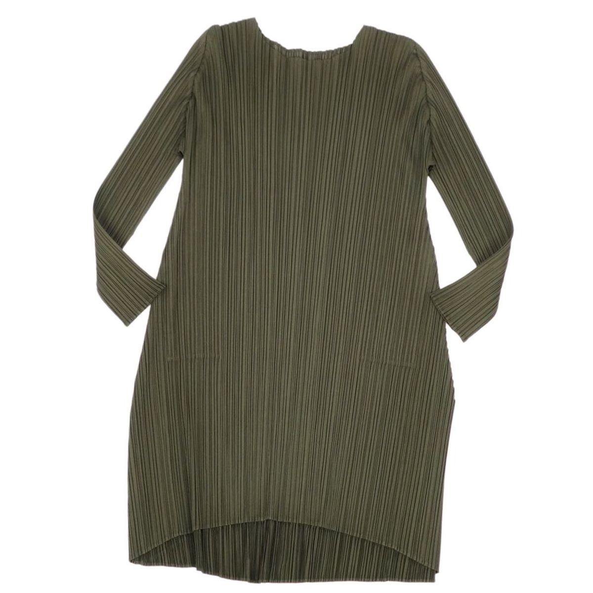 プリーツプリーズ イッセイミヤケ PLEATS PLEASE ワンピース ロングスリーブ 長袖 プリーツ トップス レディース グリーン サイズ2(M相当)