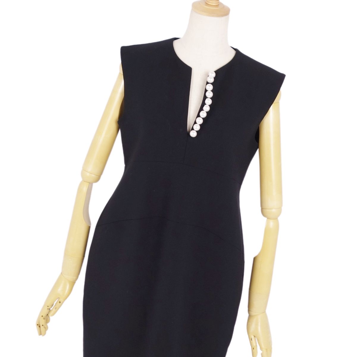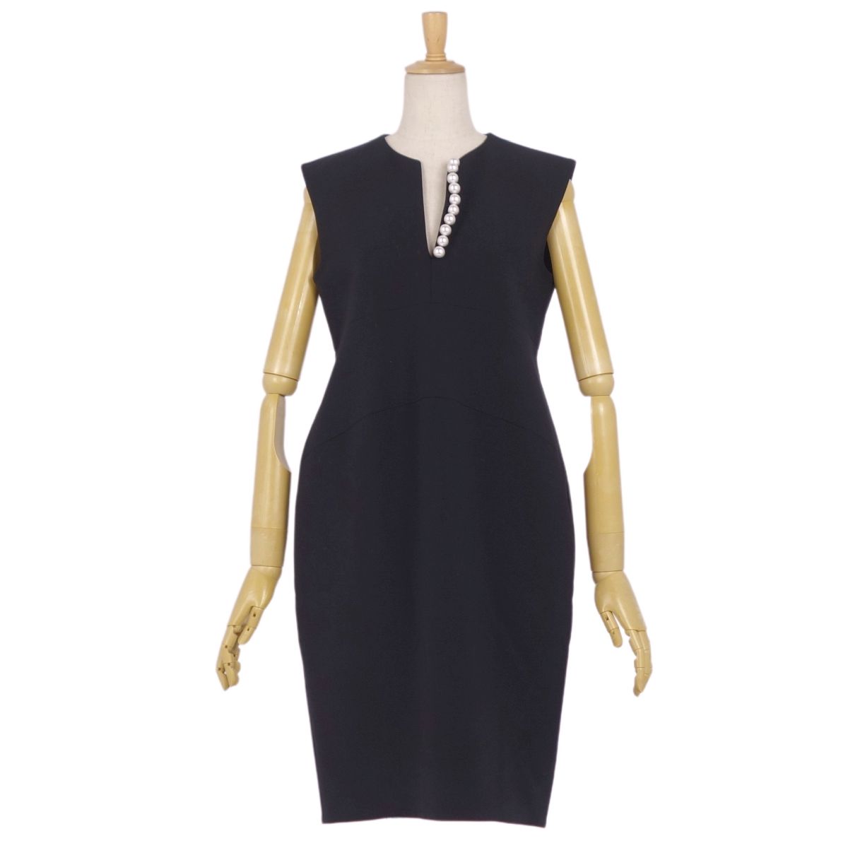 商品名 【美品】ヨーコチャン YOKO CHAN ワンピース ノースリーブ フェイクパール ポリエステル トップス レディース 38(M相当) ブラック【中古】