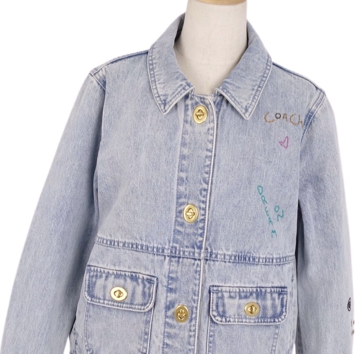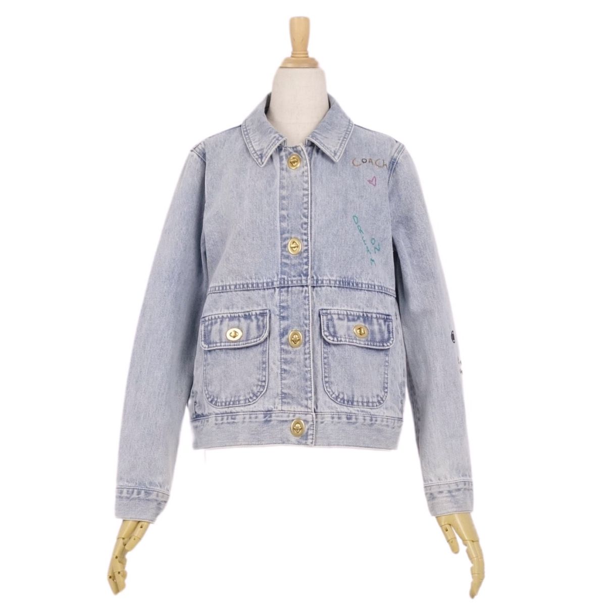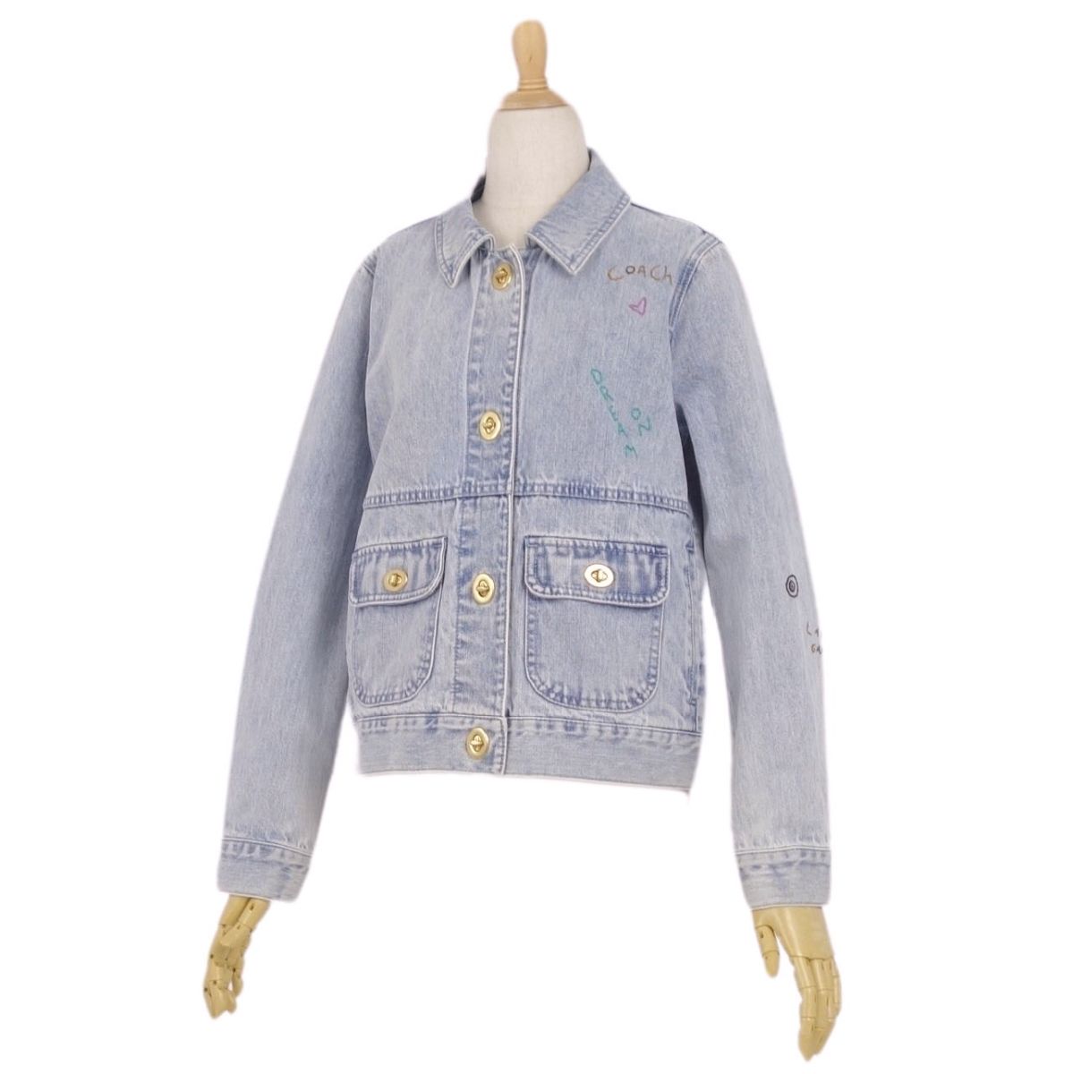 コーチ COACH ジャケット デニムジャケット ターンロック ロゴ刺繍 コットン アウター レディース ブルー サイズ0(XS相当)