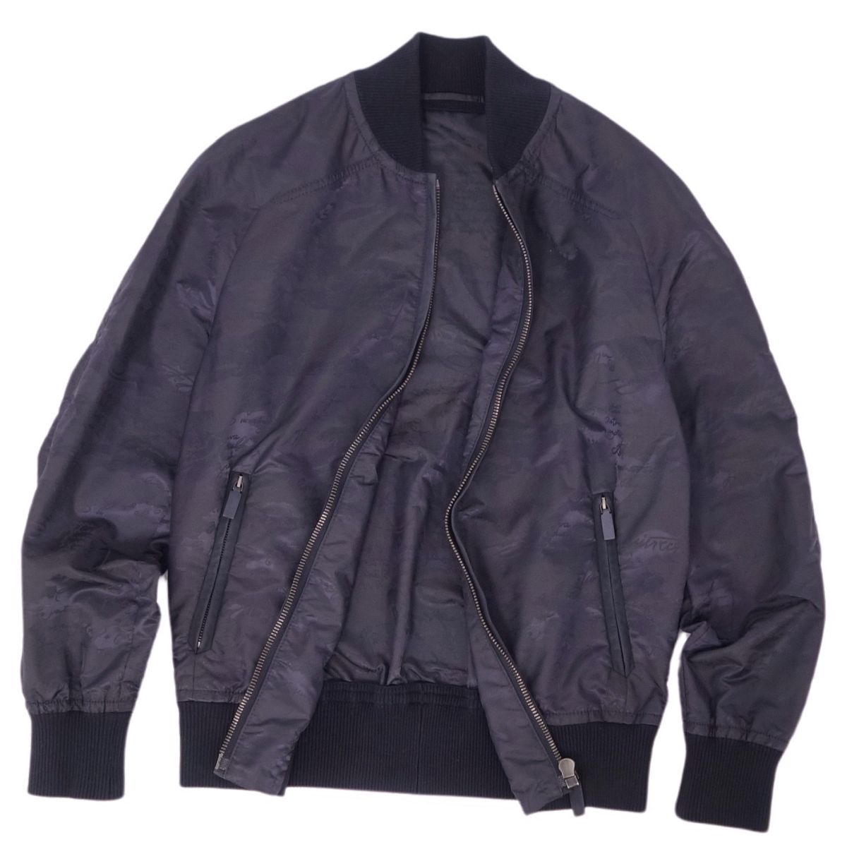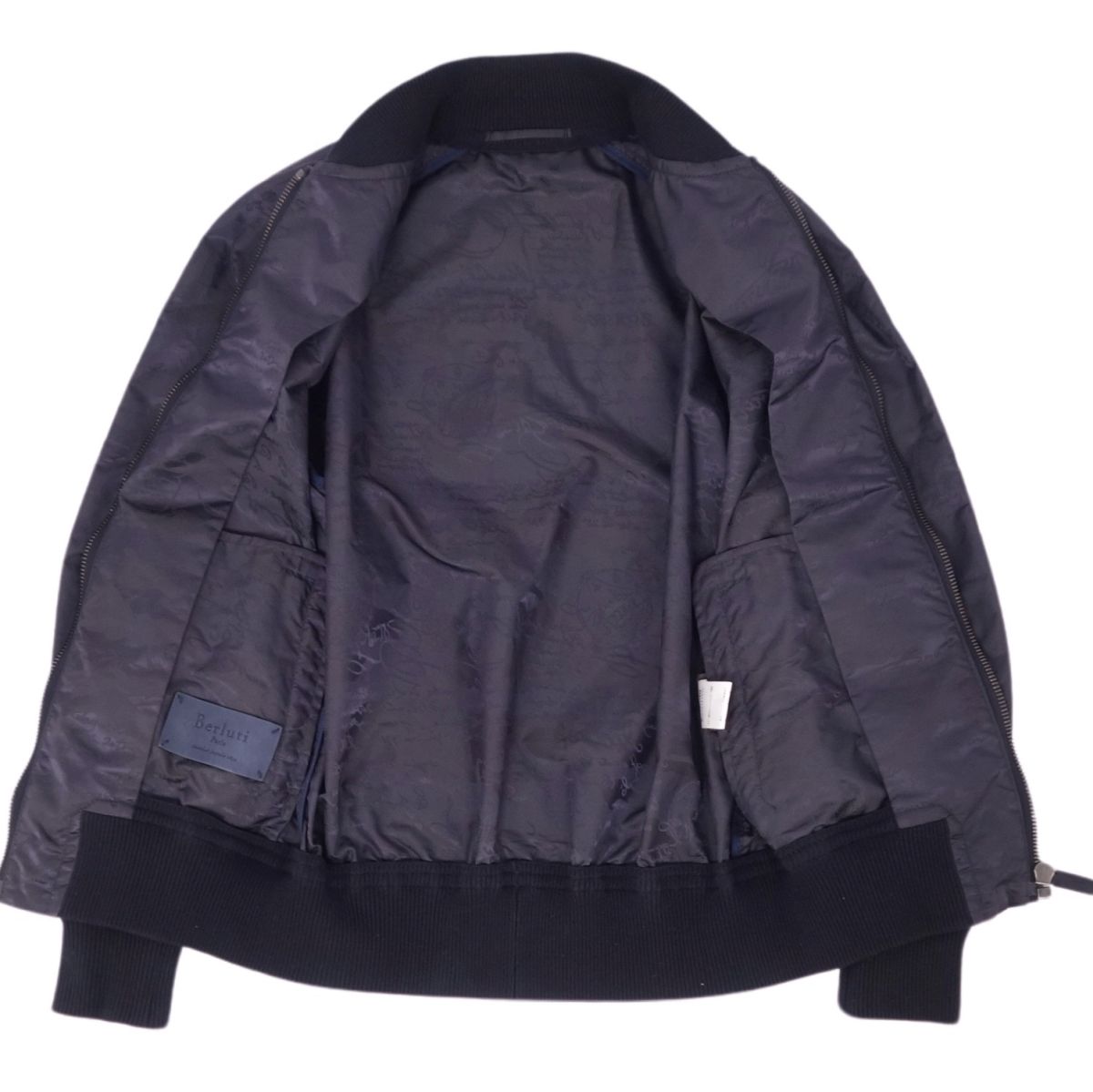 ベルルッティ Berluti ジャケット ブルゾン カリグラフィ ナイロン レザーパイピング アウター メンズ ネイビー サイズ44(S相当)