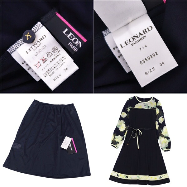 レオナール LEONARD FASHION ワンピース ドレス ロングスリーブ 長袖 ジャージー トップス レディース マルチカラー サイズ34(S相当)