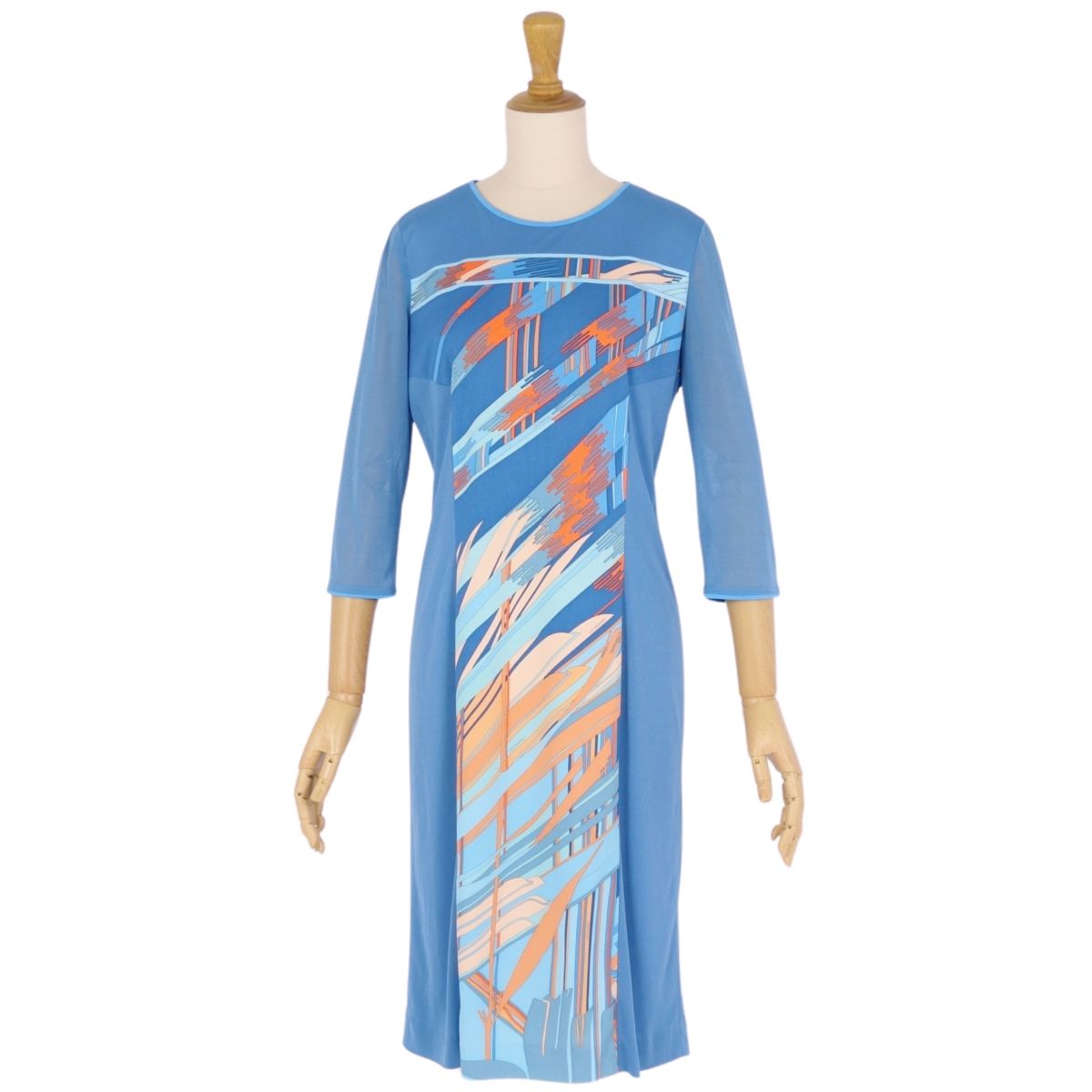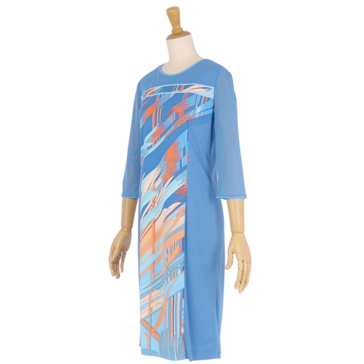 レオナール LEONARD FASHION ワンピース 七分袖 総柄 ジャージー トップス レディース マルチカラー サイズ38(M相当)