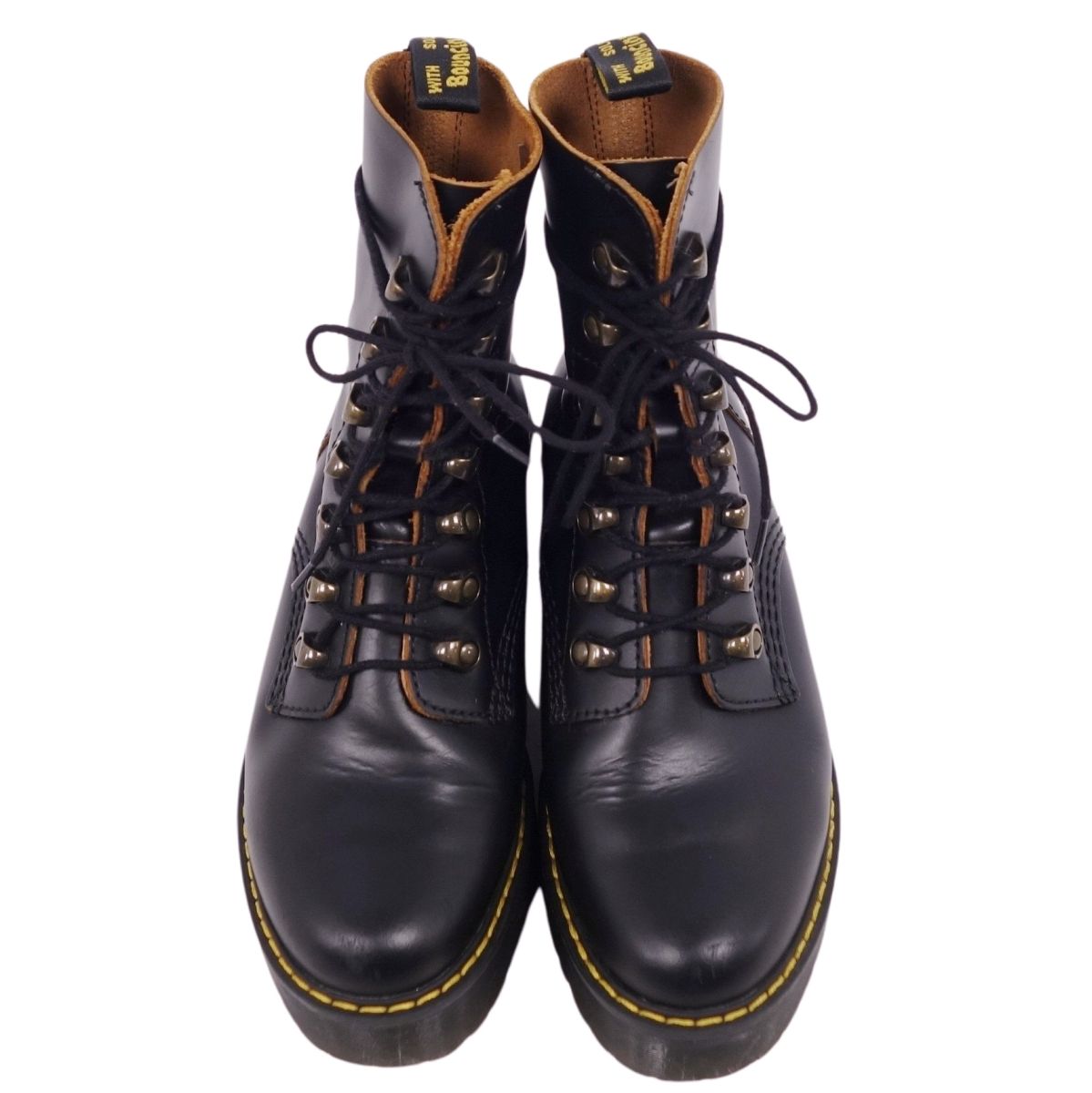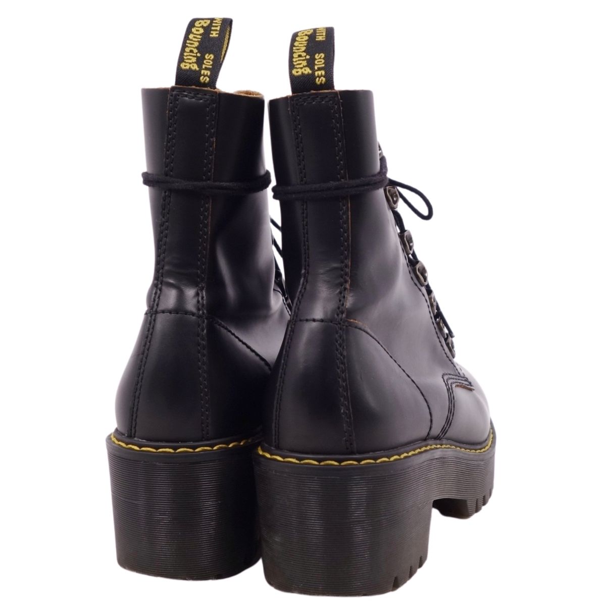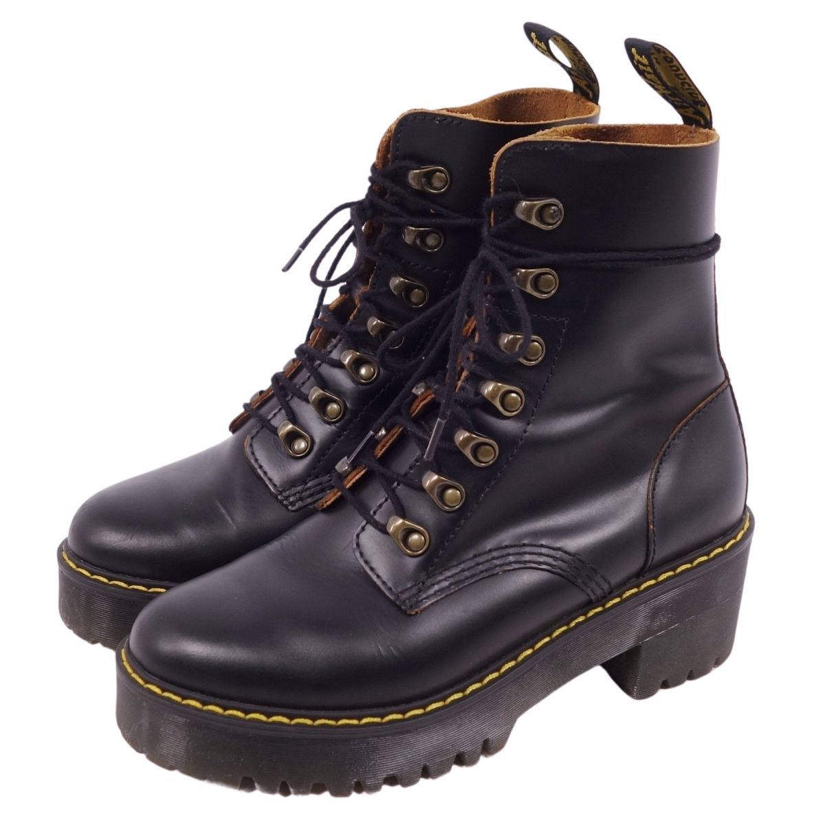 ドクターマーチン Dr.Martens ブーツ ショートブーツ 7フック LEONA ヒール チャンキーヒール レザー シューズ レディース ブラック サイズUK5(24cm相当)