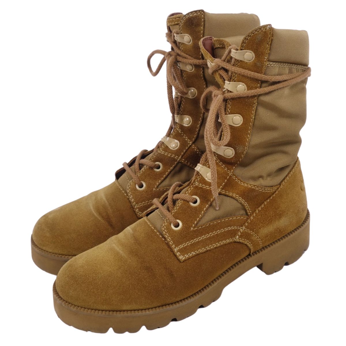 商品名 【美品】セリーヌ CELINE ブーツ ショートブーツ スウェードレザー コンバットブーツ レースアップ イタリア製 シューズ レディース 38(25cm相当) サンドベージュ【中古】