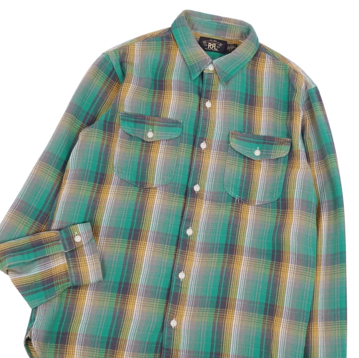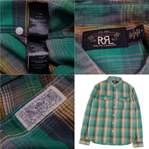 ダブルアールエル RRL Ralph Lauren シャツ ネルシャツ ロングスリーブ 長袖 チェック柄 コットン トップス メンズ グリーン/イエロー/グレー サイズM