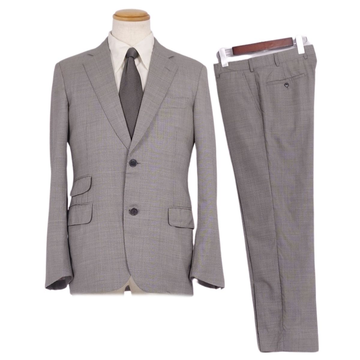 エルメス HERMES セットアップ スーツ ジャケット スラックスパンツ チェック柄 ウール シルク メンズ グレー サイズ46(S相当)