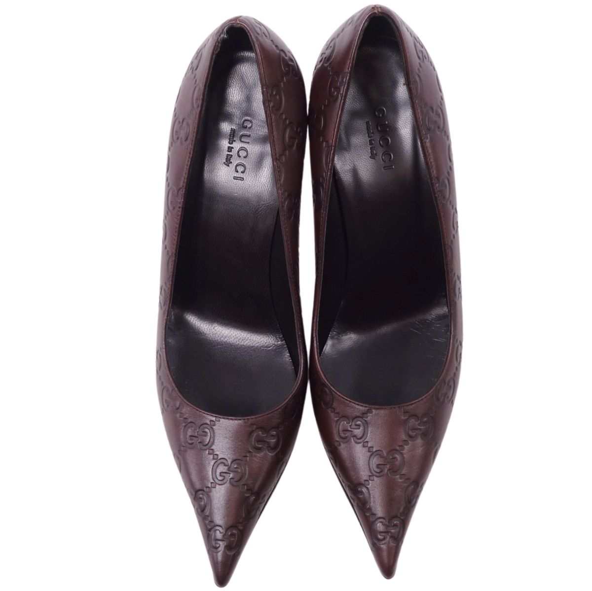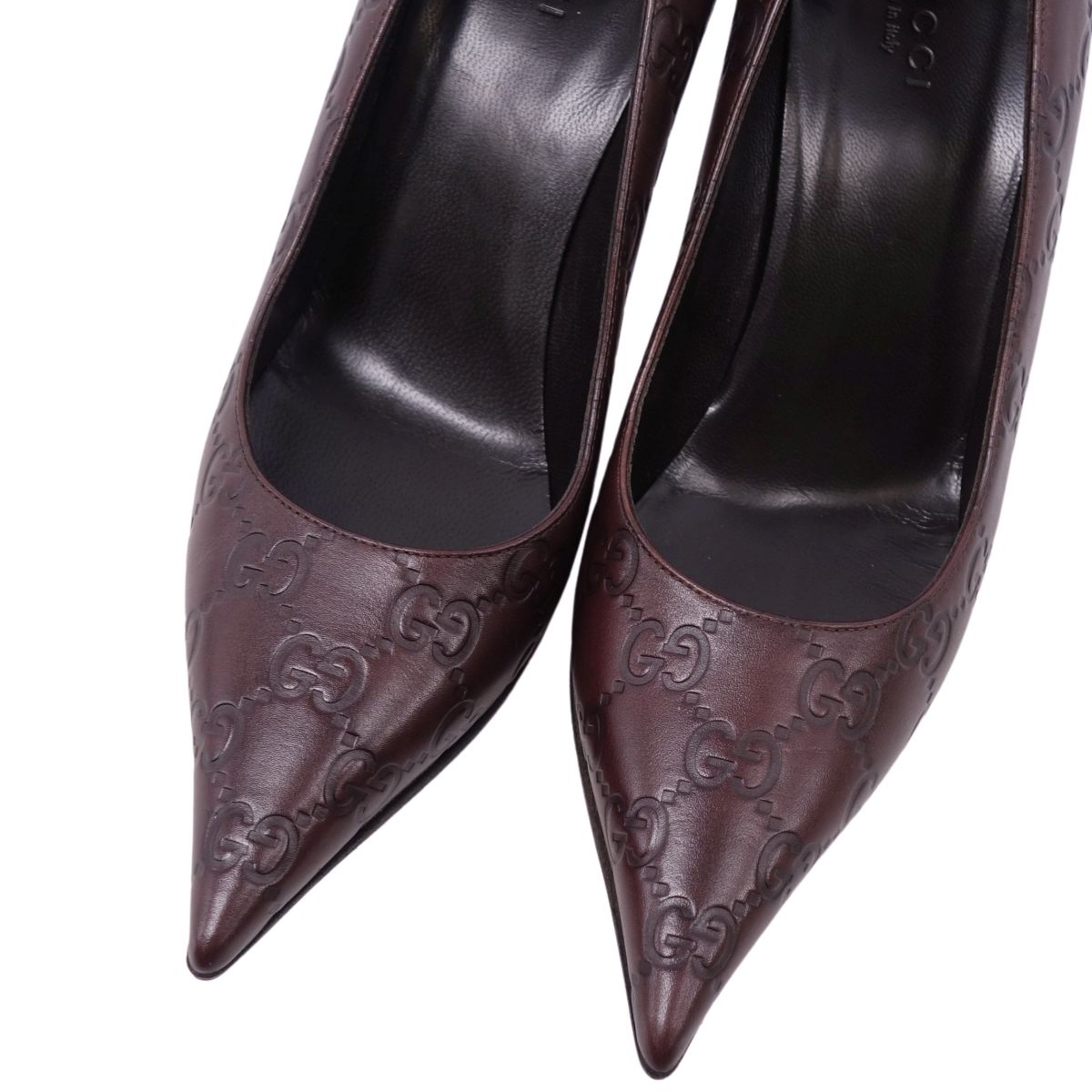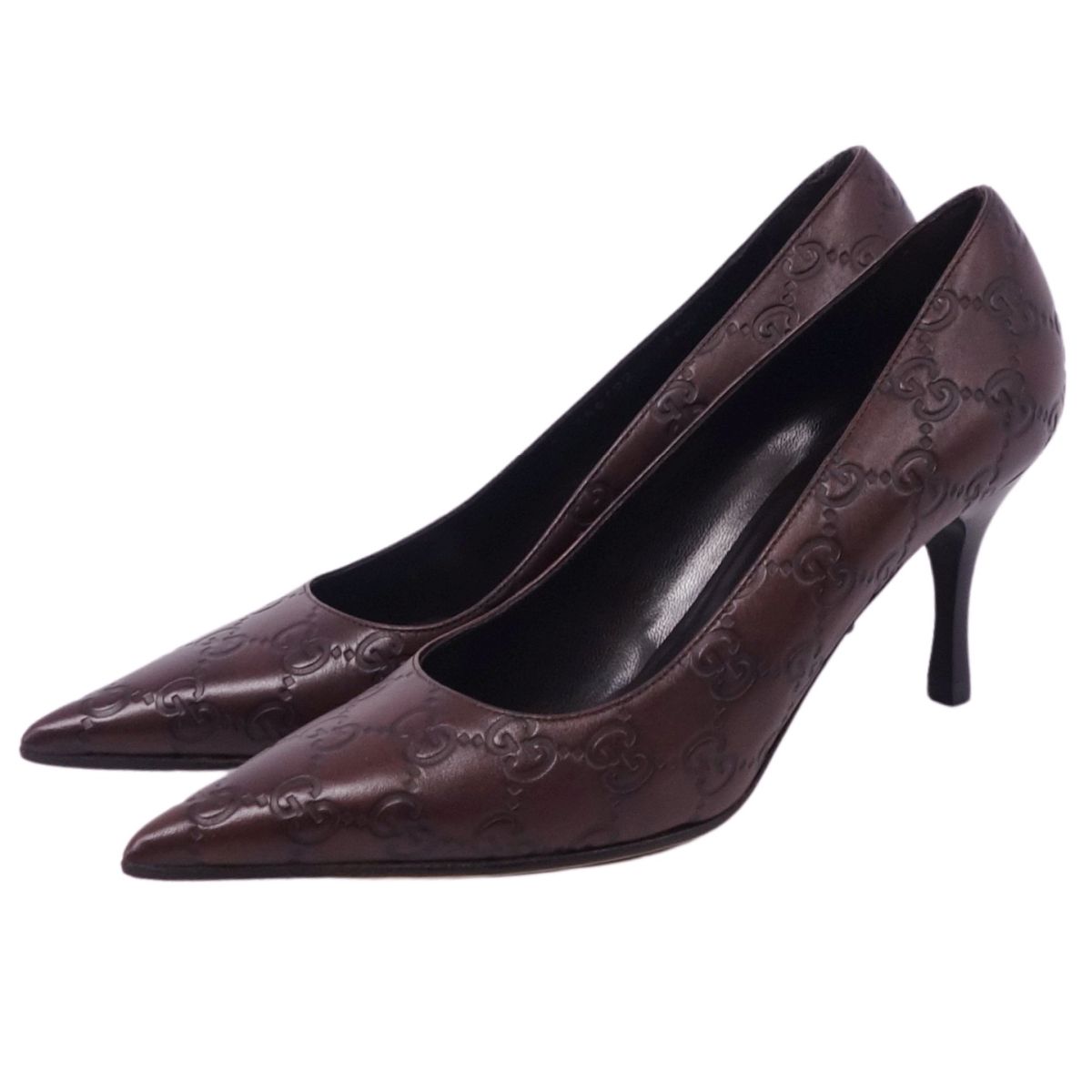 グッチ GUCCI パンプス ポインテッドトゥ ヒール GG ロゴ カーフレザー シューズ レディース ブラウン サイズ36.5C(23.5cm相当)