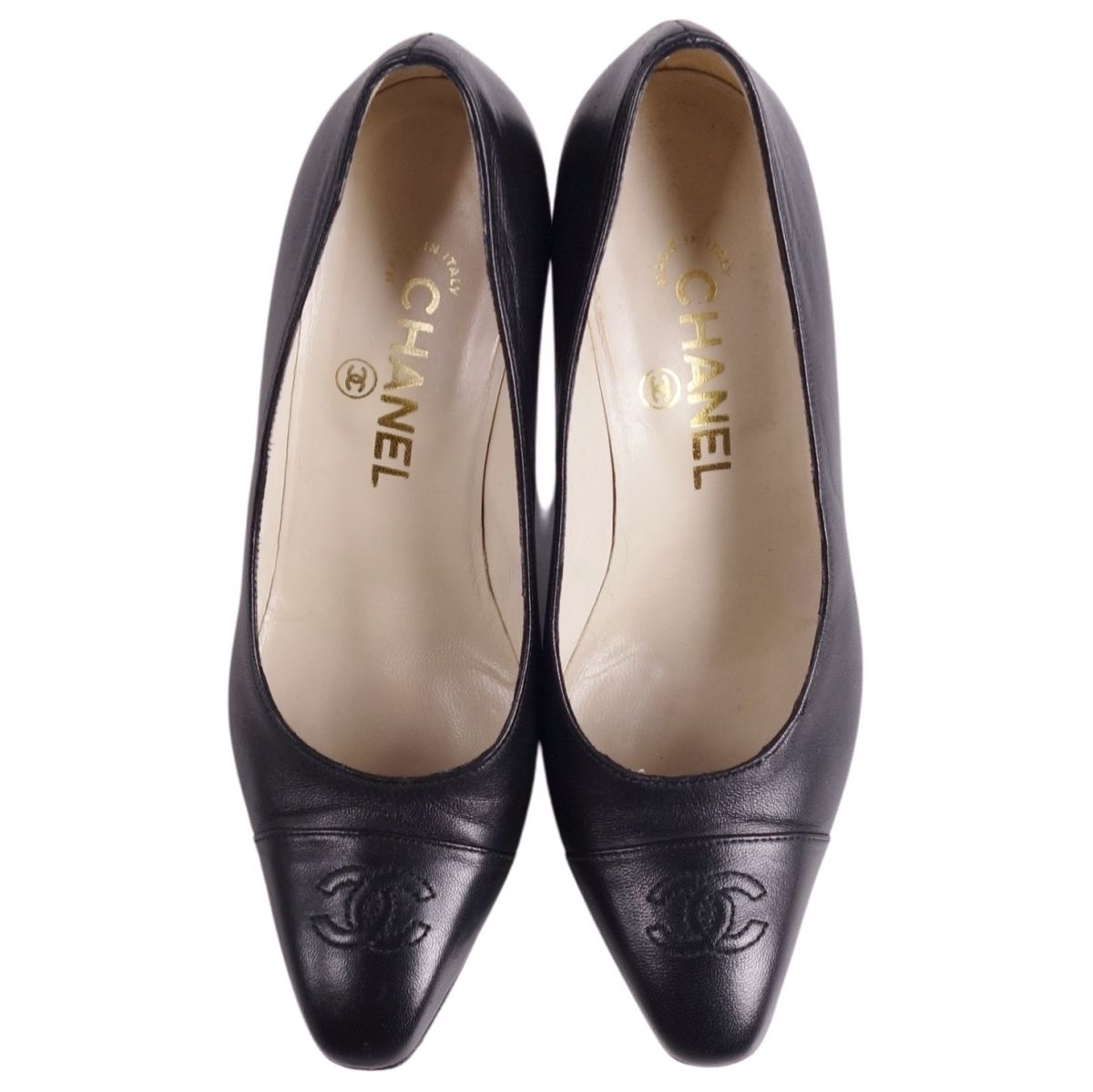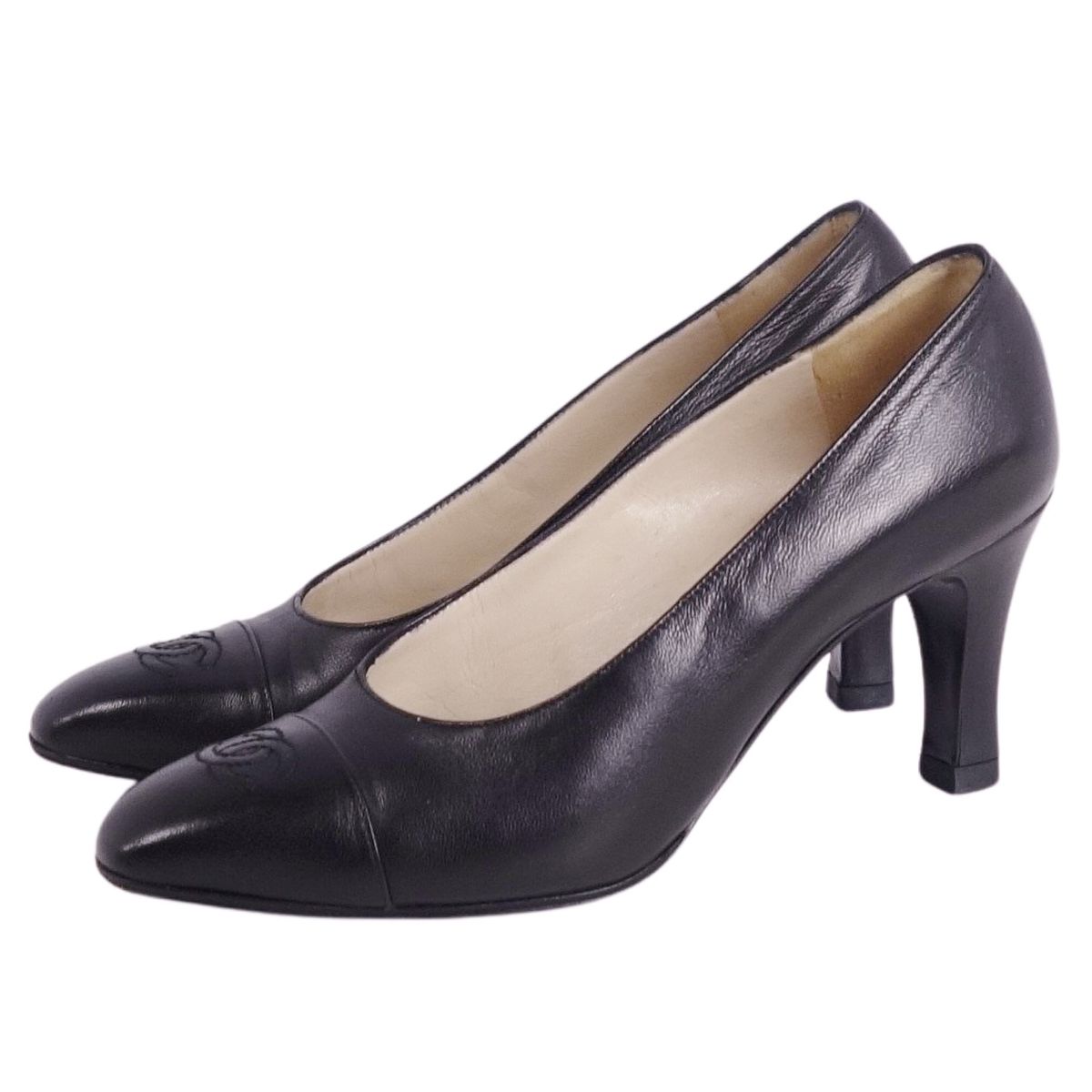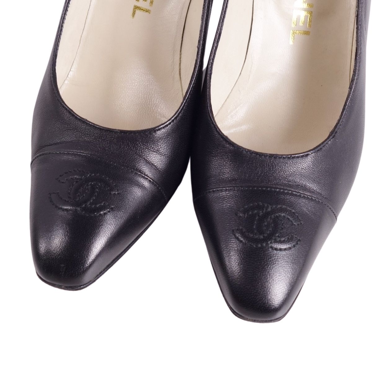 Vintage シャネル CHANEL パンプス ヒール キャップトゥ ココマーク ステッチ レザー シューズ レディース ブラック サイズ36.5