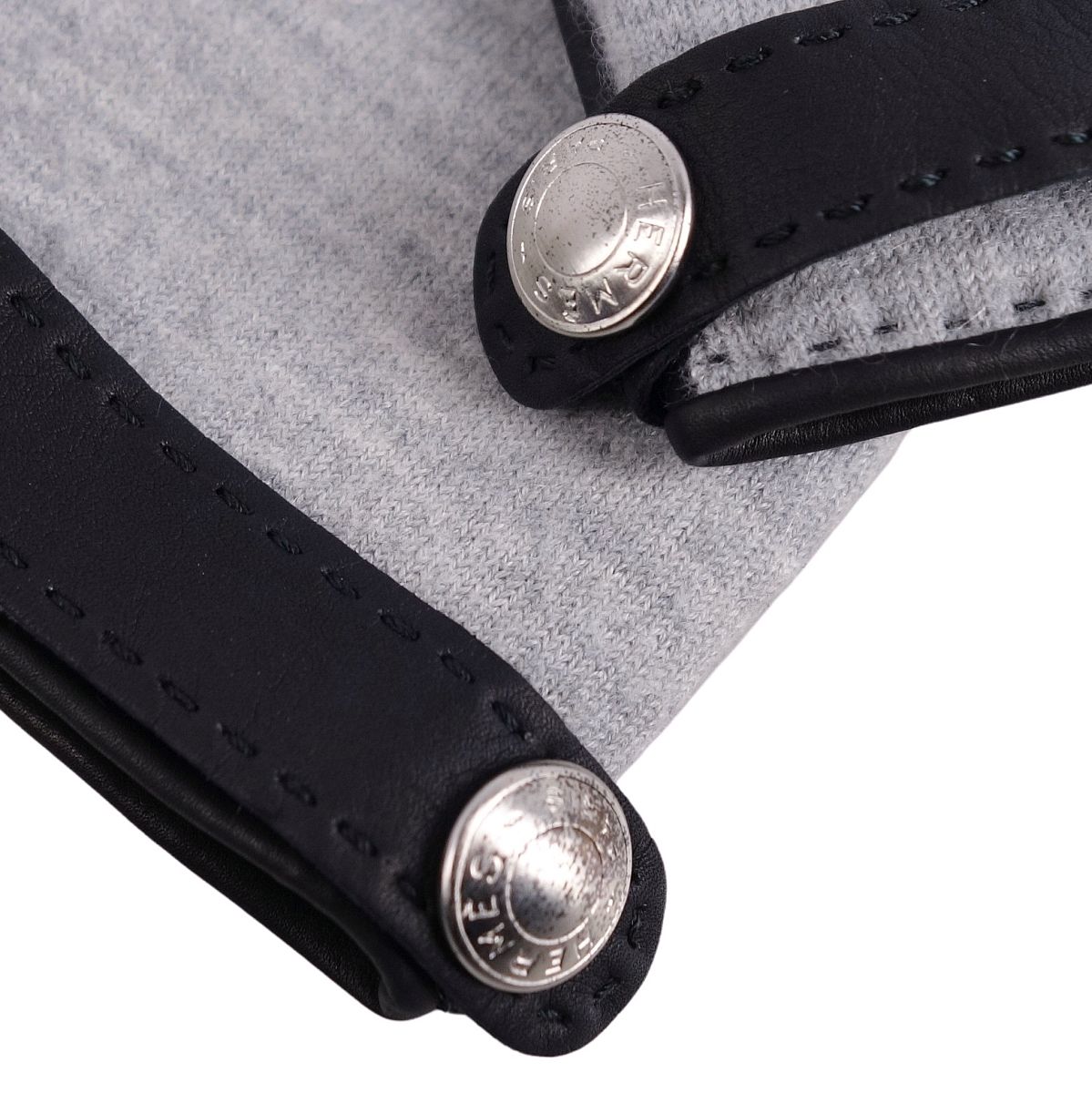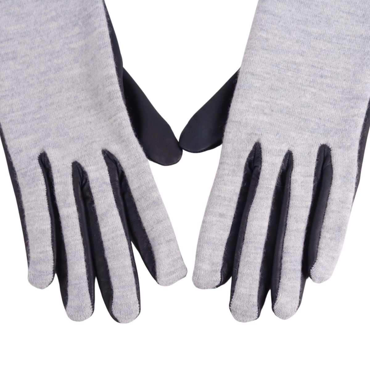 エルメス HERMES 手袋 グローブ ラムレザー カシミヤ フランス製 レディース ブラック/グレー サイズ7.5