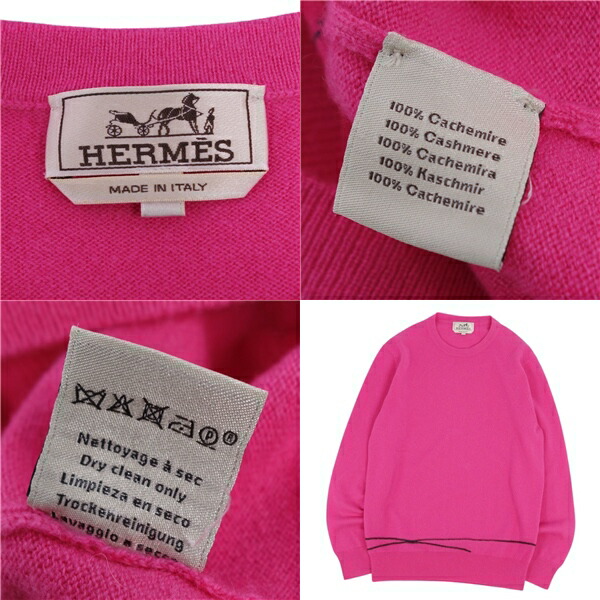 商品名 【極美品】エルメス HERMES ニット セーター クルーネック ロングスリーブ 長袖 カシミヤ100% トップス メンズ S ピンク【中古】