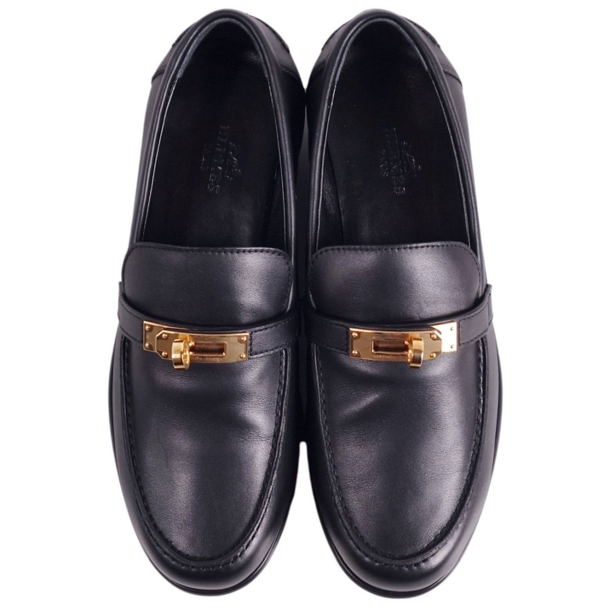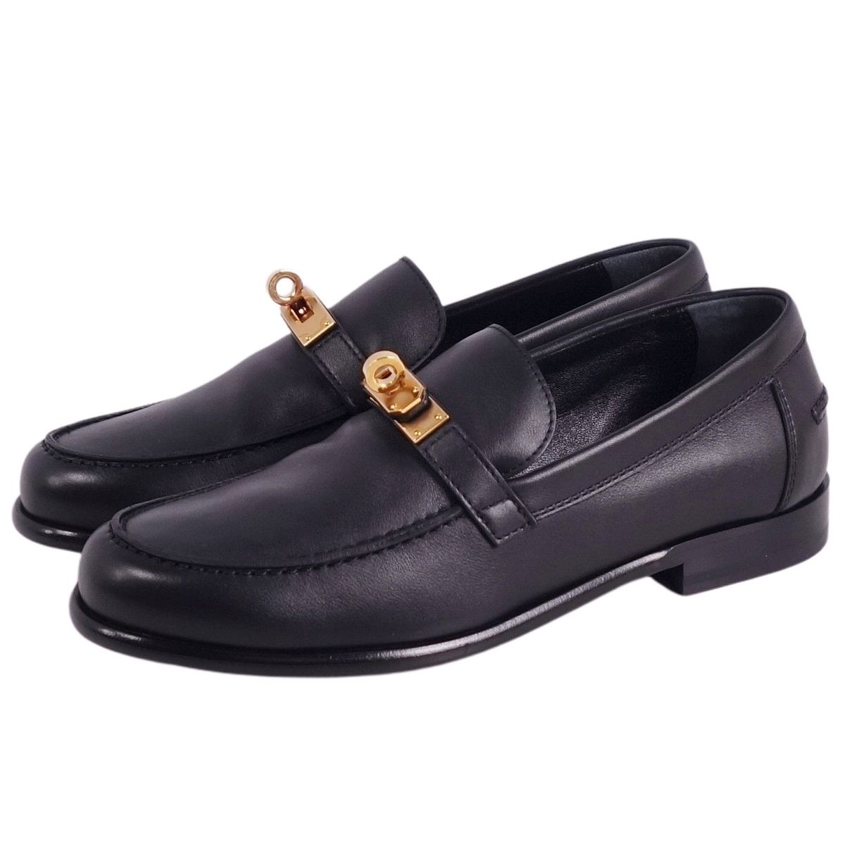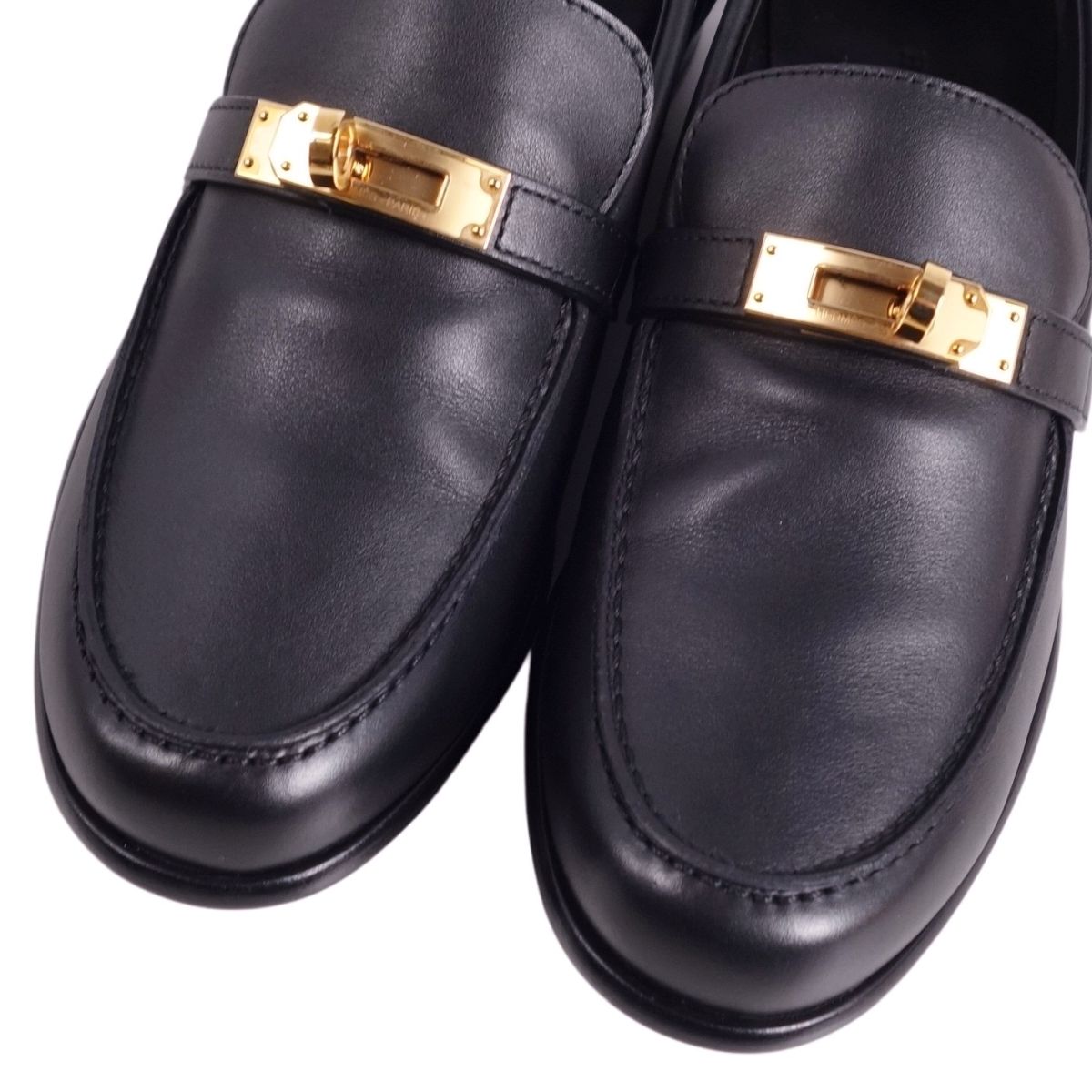 エルメス HERMES ローファー モカシン デスタン ケリー金具 カーフレザー シューズ レディース ブラック サイズ35.5(22.5cm相当)
