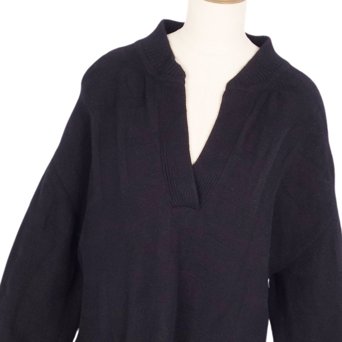 エルメス HERMES 22AW ニット セーター チュニック ロングスリーブ 長袖 Hパターン ウール トップス レディース ブラック サイズ34(S相当)