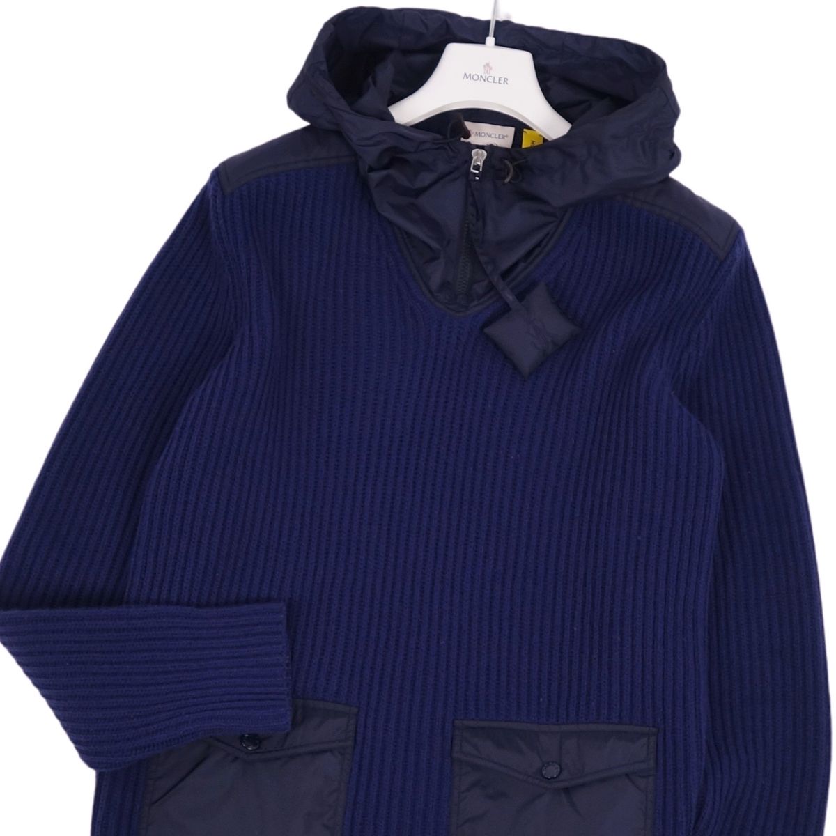 モンクレール MONCLER 2020 ニット パーカー プルオーバー ナイロン ウール トップス メンズ ネイビー サイズXL