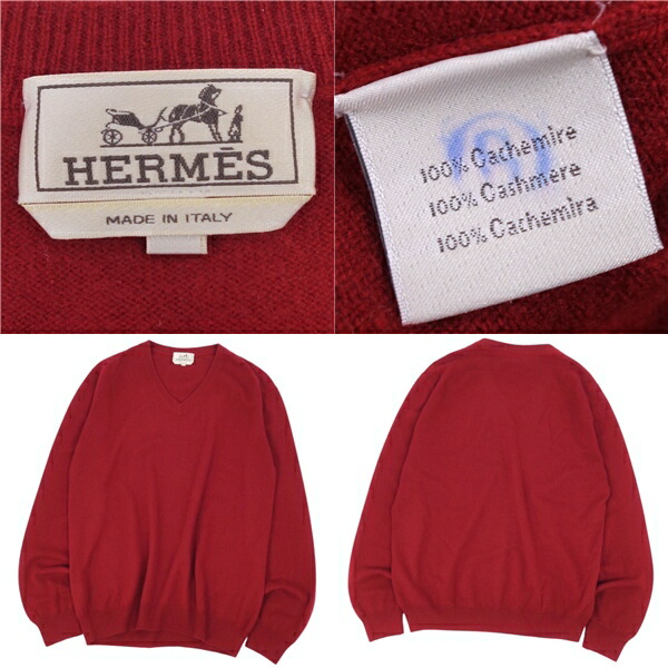 | 商品名 | 【極美品】エルメス HERMES ニット セーター ロングスリーブ 長袖 Vネック カシミヤ100% トップス メンズ XXXL レッド【中古】 |