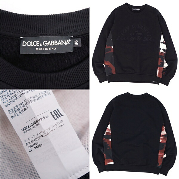 ドルチェ&ガッバーナ DOLCE&GABBANA スウェット トレーナー プルオーバー 迷彩 コットン トップス メンズ イタリア製 ブラック サイズ46(S相当)