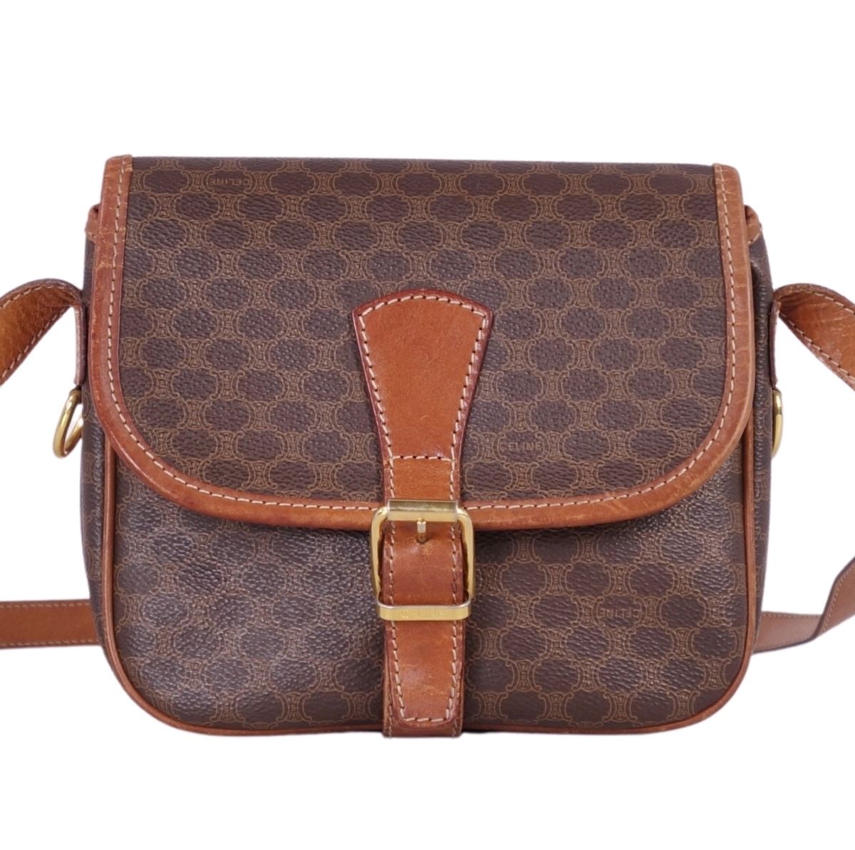 Vintage セリーヌ CELINE バッグ ショルダーバッグ ミニショルダー マカダム トリオンフ レザー カバン イタリア製 レディース ブラウン サイズ-