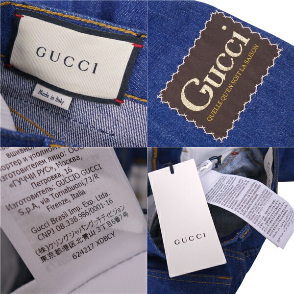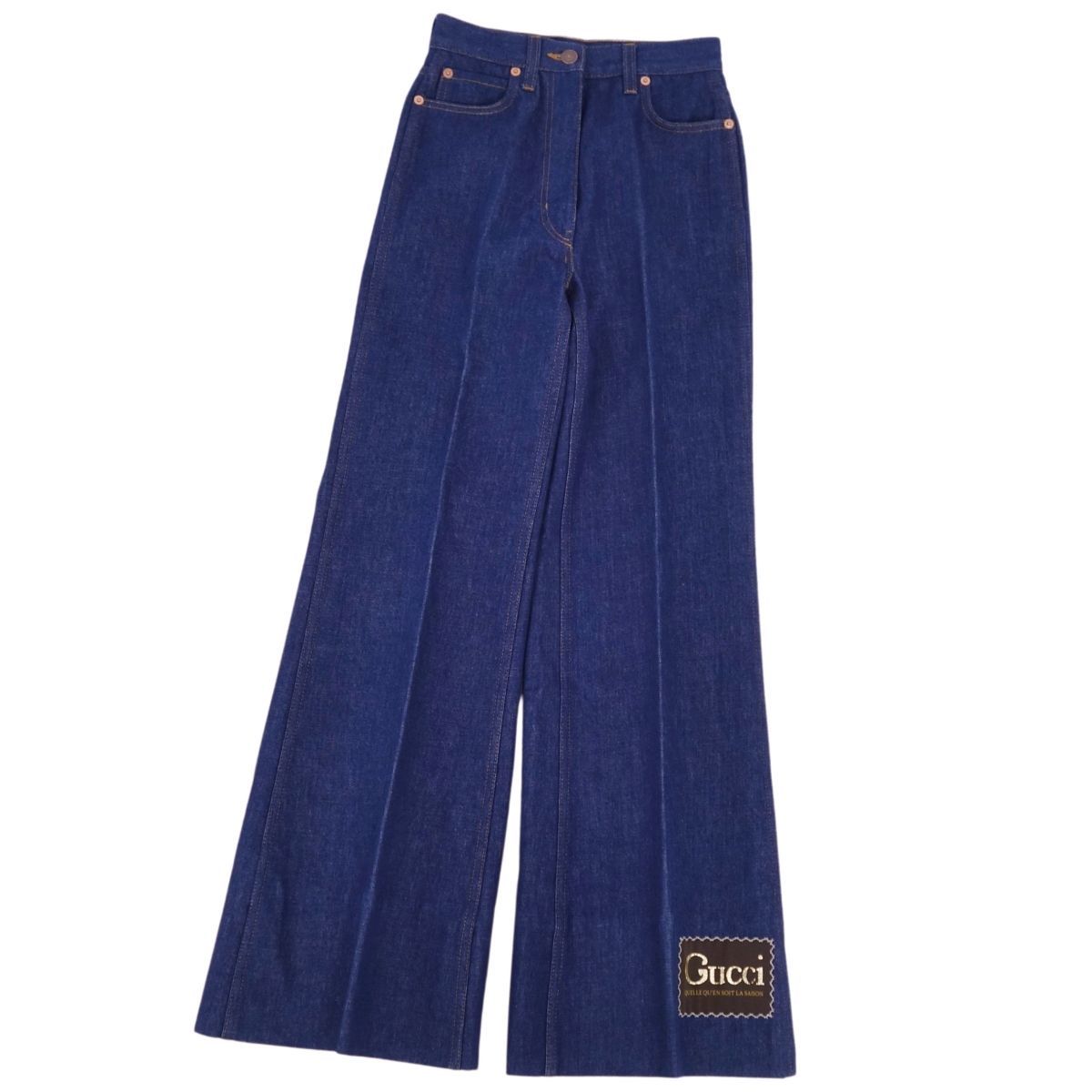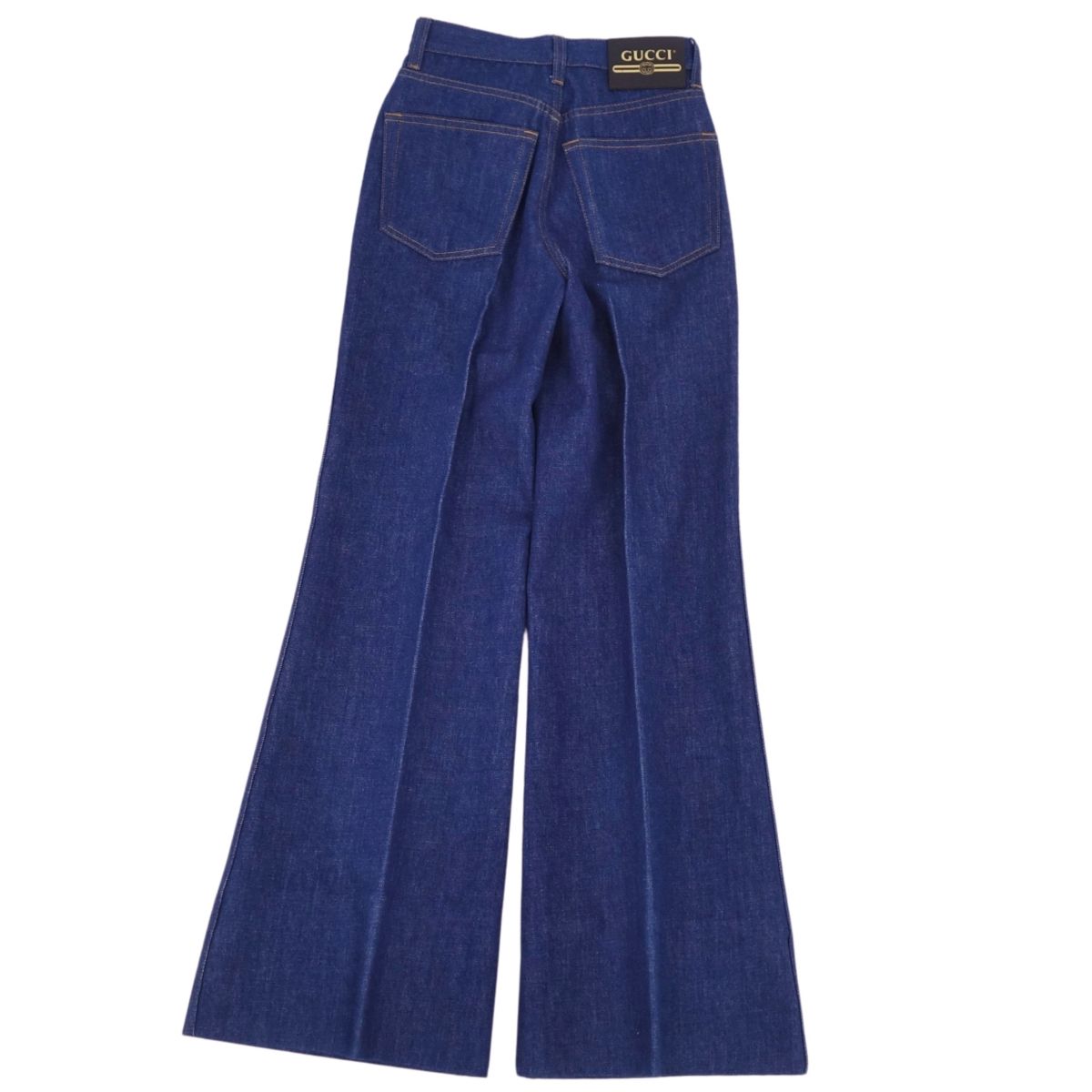 グッチ GUCCI パンツ デニムパンツ ジーンズ フレア ベルボトム ブーツカット ロゴ ボトムス レディース インディゴブルー サイズ20
