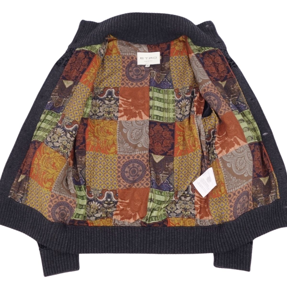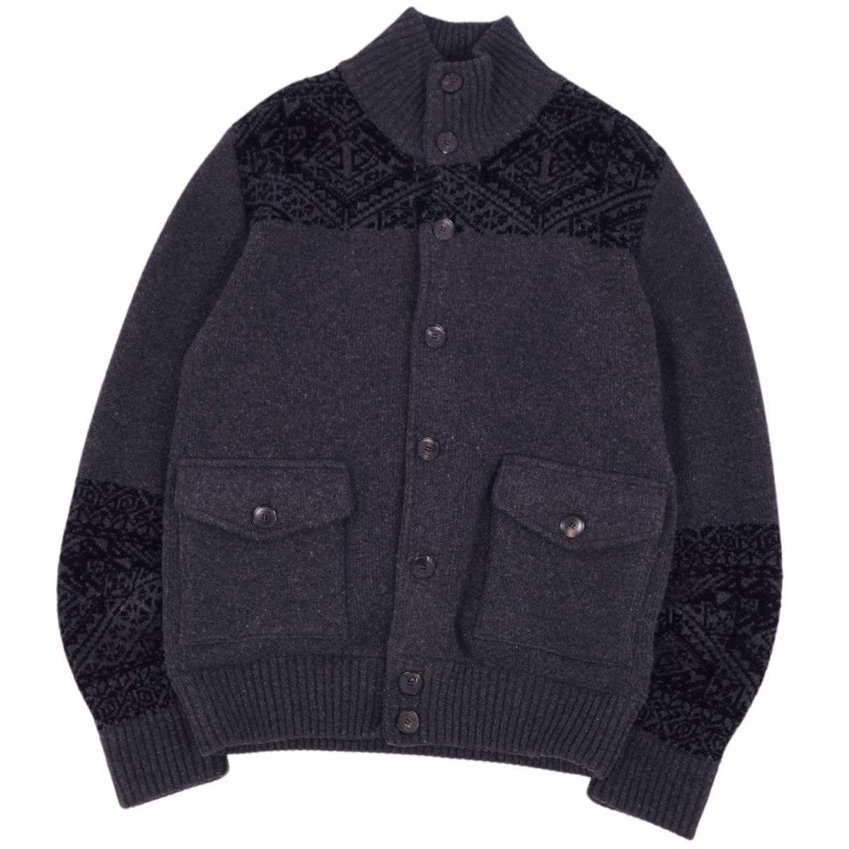 エトロ ETRO カーディガン ニット セーター ロングスリーブ ハイネック イタリア製 ウール トップス メンズ ダークグレー/ブラック サイズM