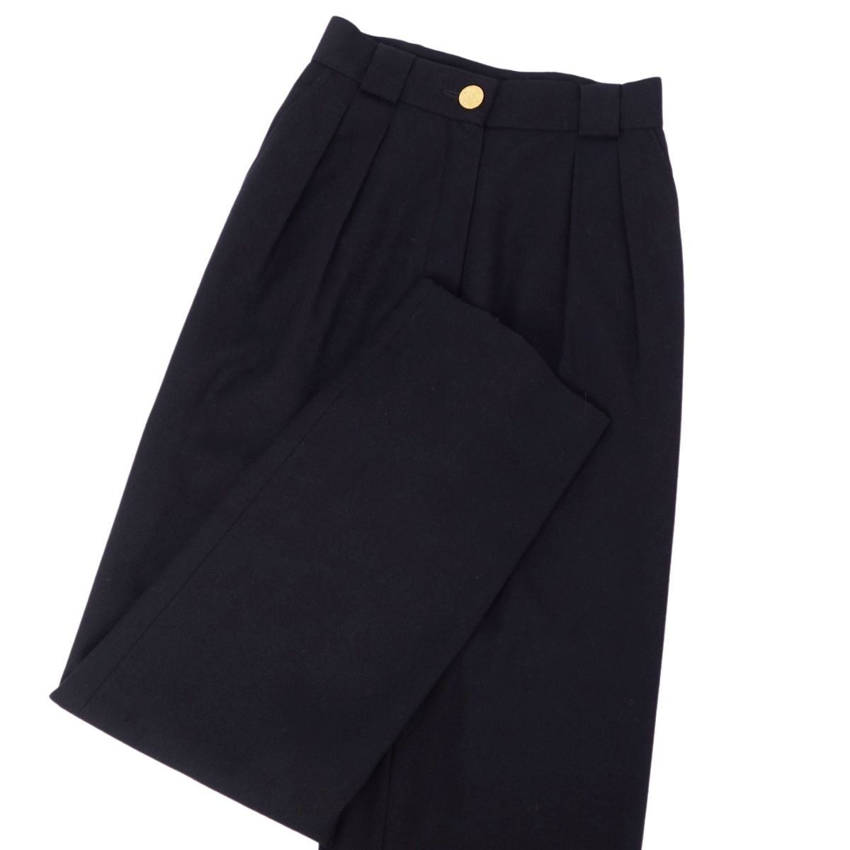 【美品】Vintage シャネル CHANEL パンツ ロングパンツ ココマークボタン ウール ボトムス レディース フランス製 34(S相当) ブラック【中古】