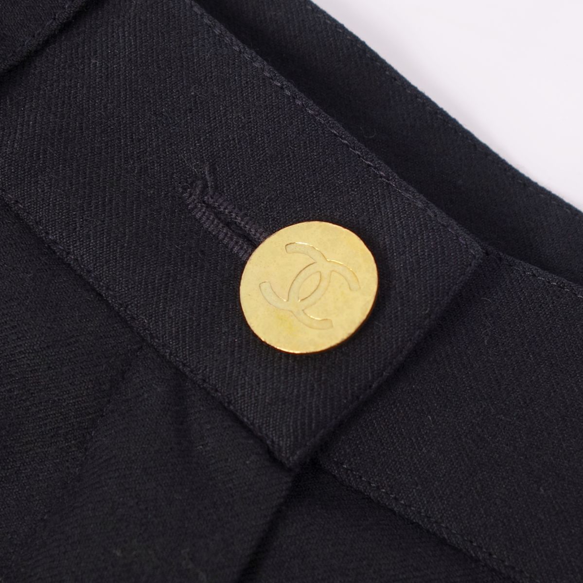 Vintage シャネル CHANEL パンツ ロングパンツ ココマークボタン ウール ボトムス レディース フランス製 ブラック サイズ34(S相当)