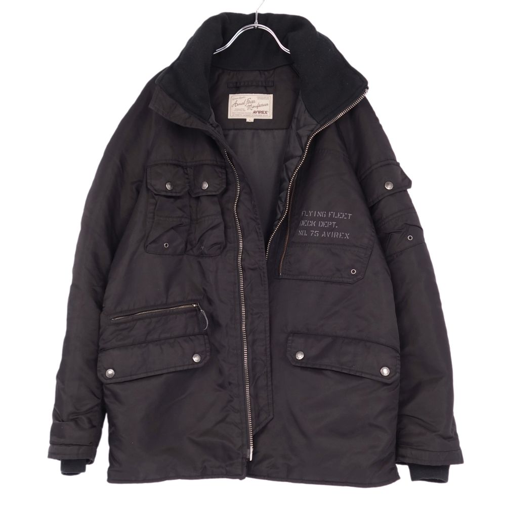 アビレックス AVIREX MzP別注 ジャケット フライトジャケット フード付き ナイロン 中綿入り アウター メンズ ブラック サイズL