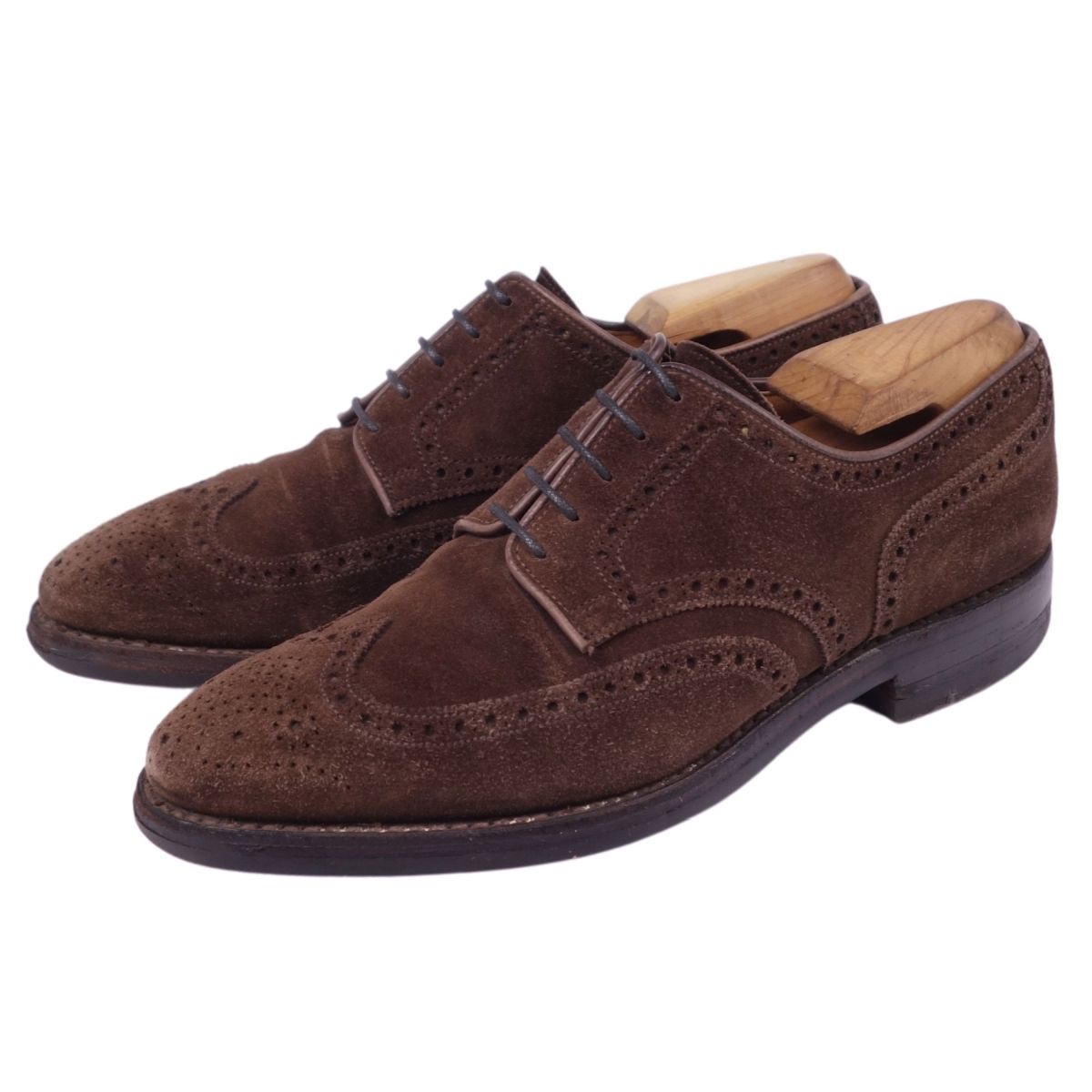 クロケット&ジョーンズ Crockett&Jones レザーシューズ ダービーシューズ フルブローグ 外羽根 スウェードレザー 革靴 メンズ ブラウン サイズ6E(24.5cm相当)