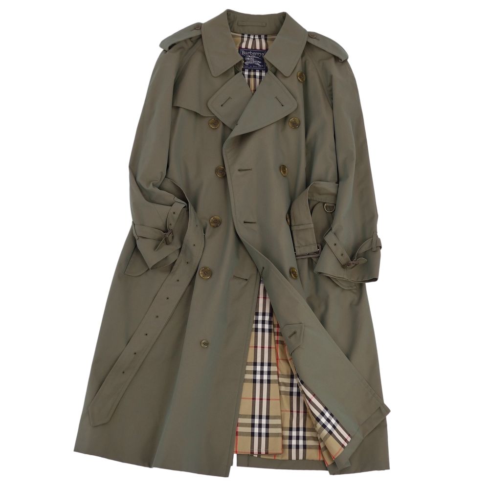 【新品同様】Vintage バーバリー Burberrys コート 英国製 トレンチコート コットン100% 裏チェック アウター メンズ 48(M相当) オリーブカーキ【中古】