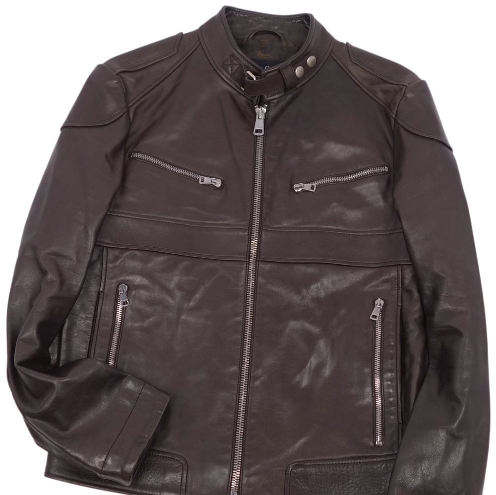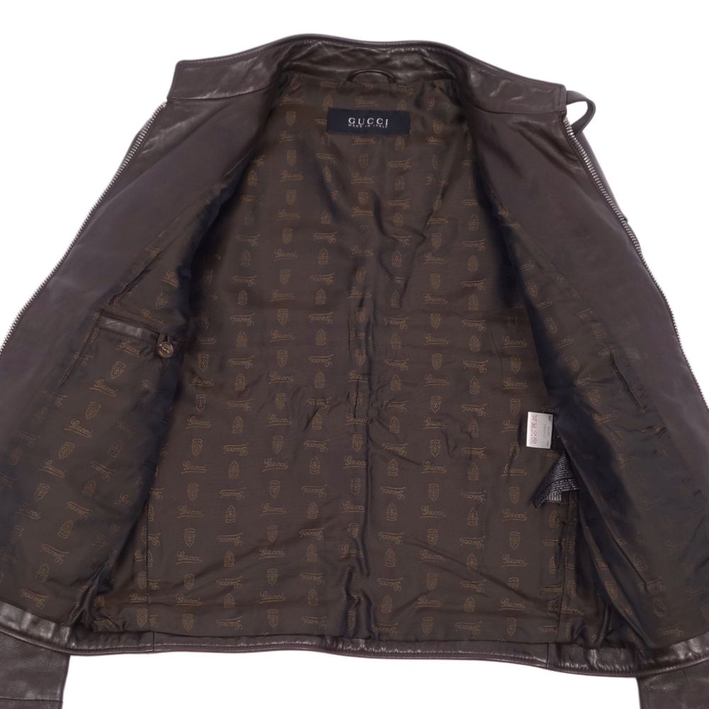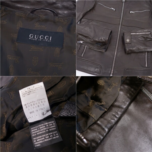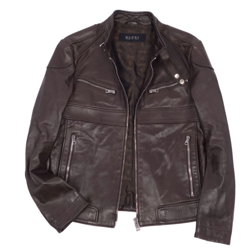 グッチ GUCCI ジャケット レザージャケット ライダース ジップアップ ホースレザー 馬革 アウター メンズ ブラウン サイズ44(S相当)