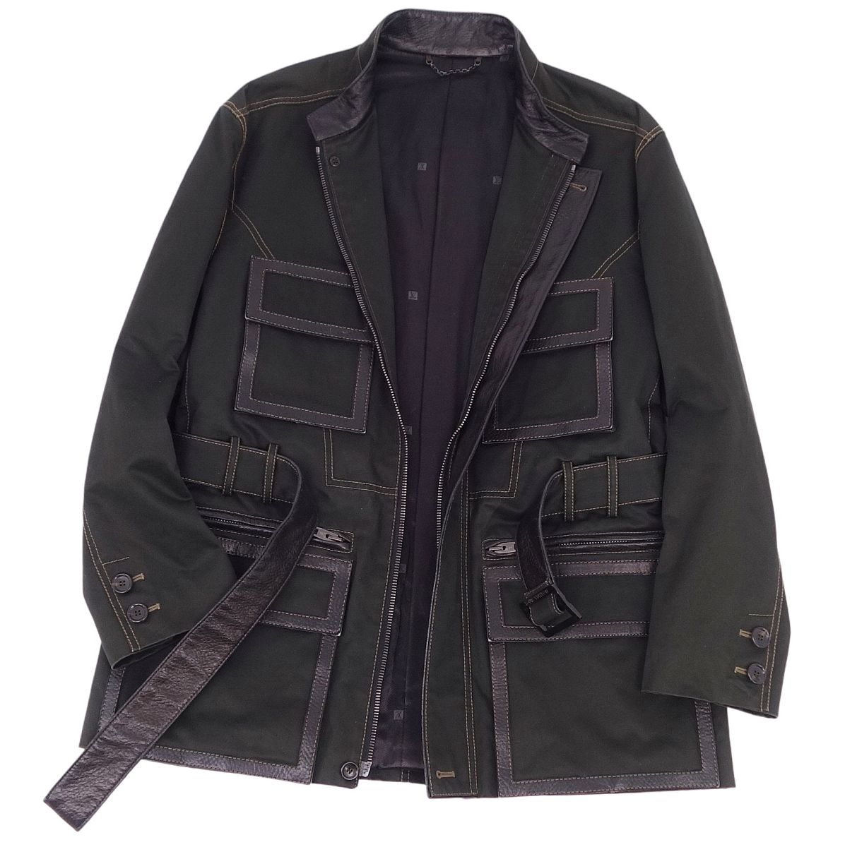ルイヴィトン LOUIS VUITTON ジャケット スタンドカラー ベルト付き コットン レザー メンズ アウター カーキ サイズ54(XL)