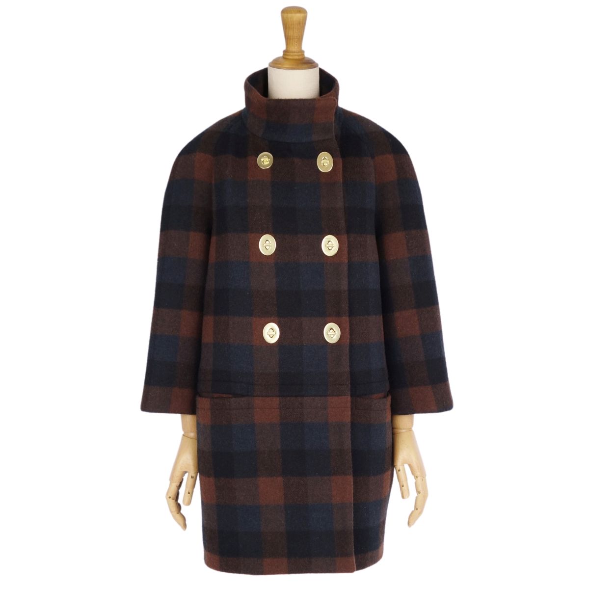 商品名 【美品】コーチ COACH コート ロングコート ラグランスリーブ スタンドカラー ターンロック チェック ウール アウター レディース XS ブラウン/ネイビー【中古】