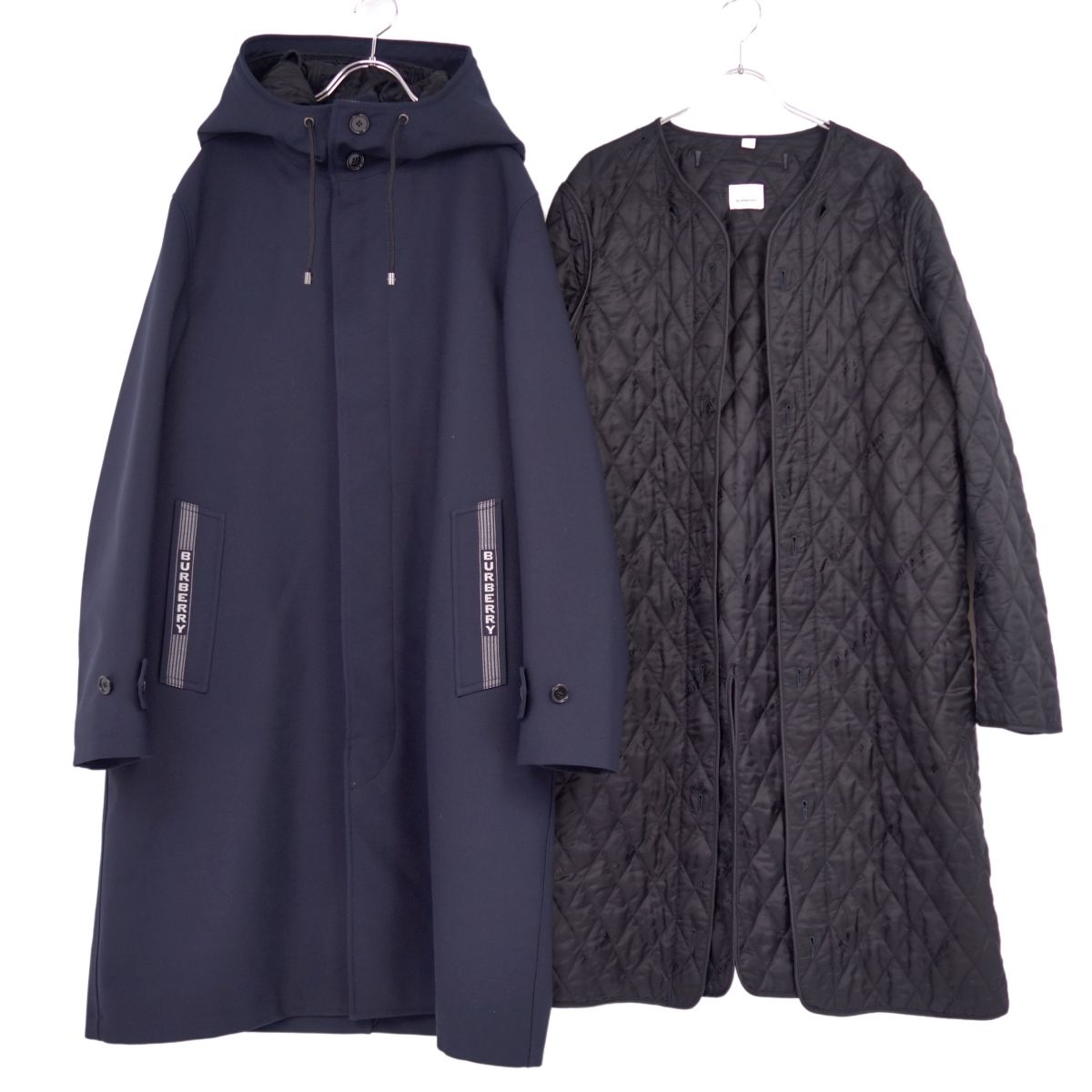 バーバリー BURBERRY コート ロゴ ライナー付き フード ロングコート メンズ アウター ネイビー サイズ48(M相当)
