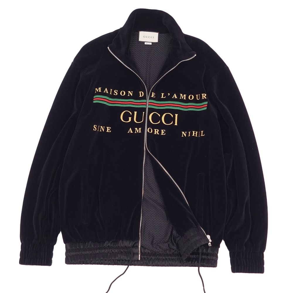 グッチ GUCCI ジャケット 19AW シェニール ジップアップ ベロア ロゴ アウター メンズ イタリア製 ブラック サイズS