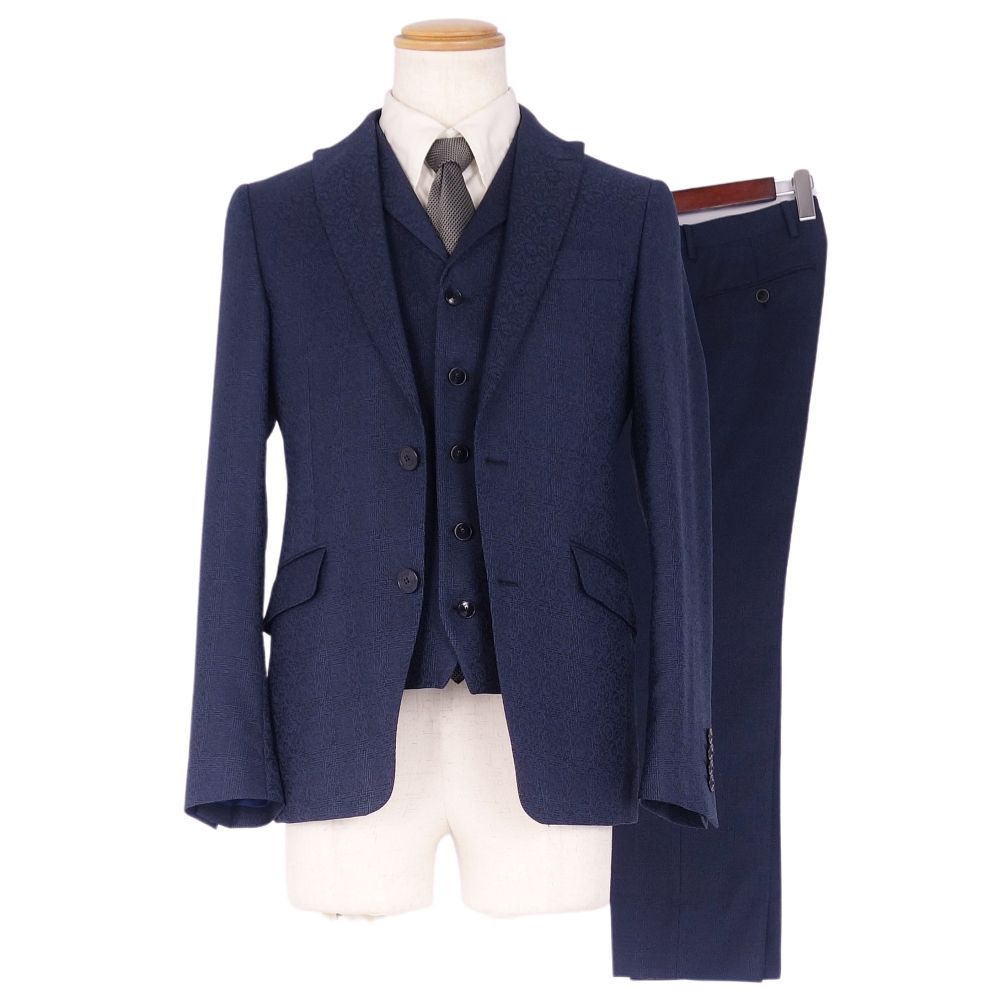 エトロ ETRO セットアップ シングル スーツ 3ピース 総柄 ウール ジャケット パンツ メンズ イタリア製 ネイビー サイズ44(S相当)