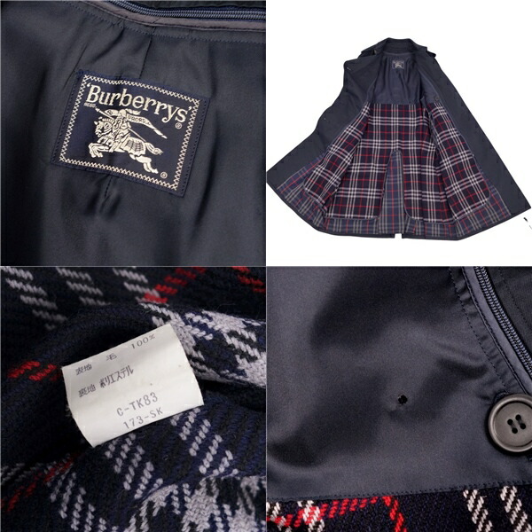 | 商品名 | Vintage バーバリー Burberrys コート ライナー付き トレンチコート 裏チェック コットン メンズ 94-175(M~L相当) ネイビー【中古】 |