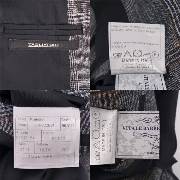 | 商品名 | 【美品】タリアトーレ TAGLIATORE ジャケット テーラードジャケット シングル チェック柄 ウール アウター メンズ 56(4L相当) グレー【中古】 |