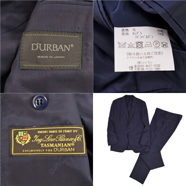 商品名 【美品】ダーバン D'URBAN セットアップ スーツ Loro Piana テーラードジャケット スラックスパンツ シングル メンズ AB6(L相当) ネイビー【中古】